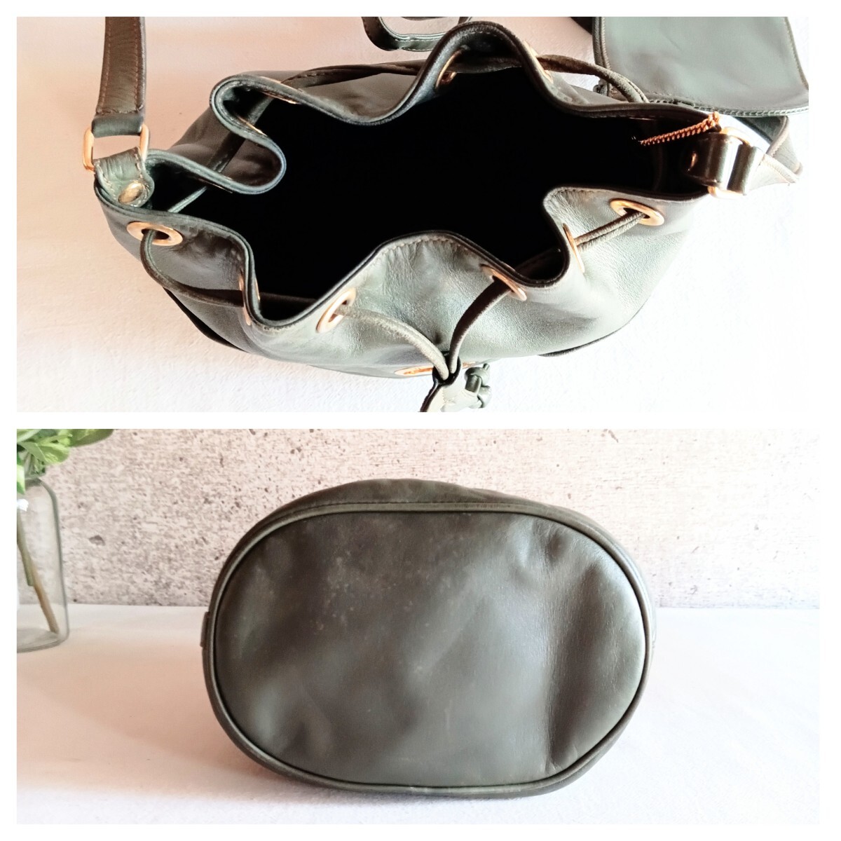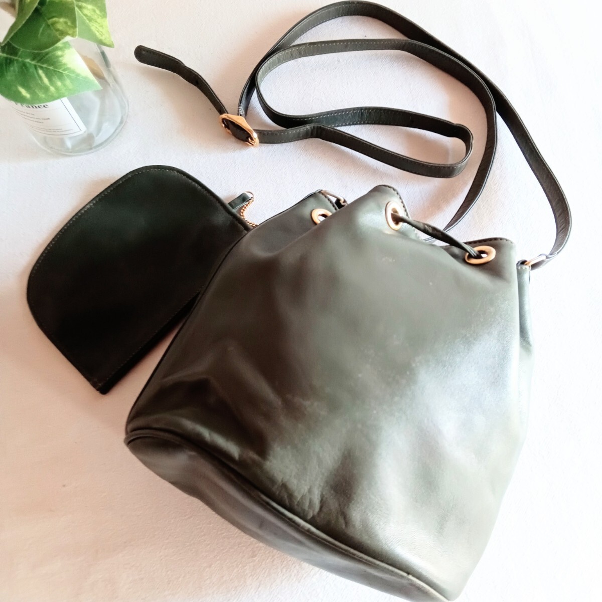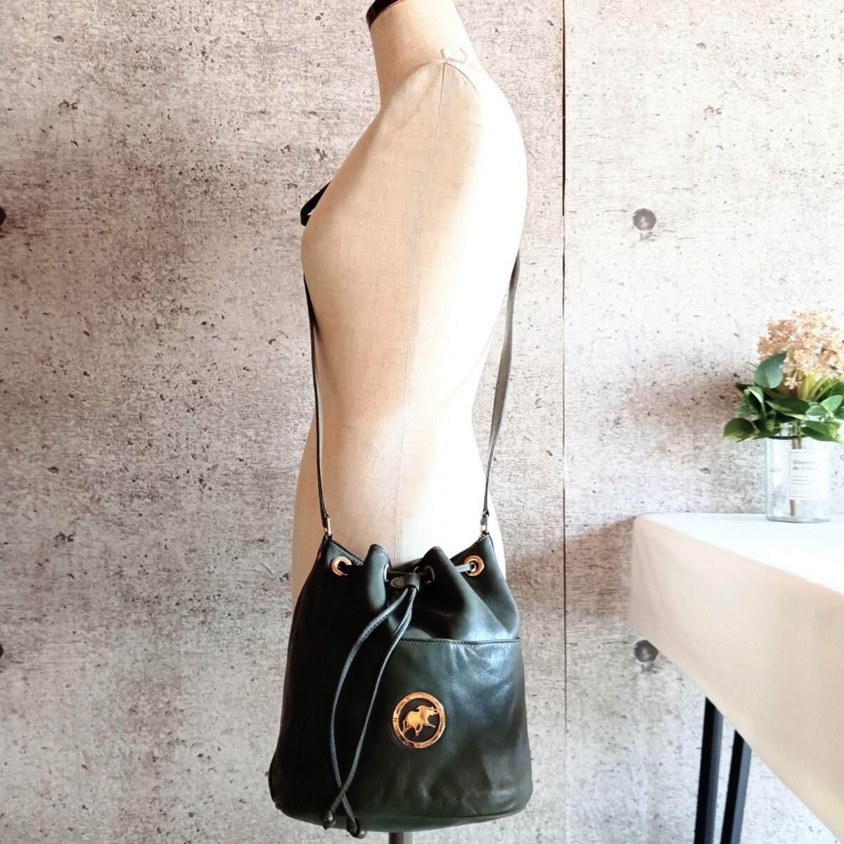 【商品】 HUNTING WORLD ハンティング ワールド ヴィンテージ 本革 オール レザー 巾着 バケットバッグ バケツ型 ショルダーバッグ 斜め掛け 肩掛け クロスボディ ポーチ 付き 鞄 クラシック オールド VINTAGE イタリア製
