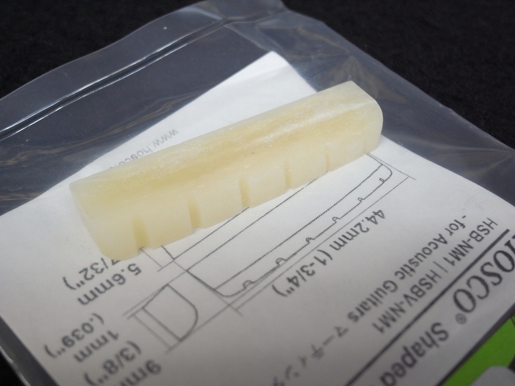 ギターパーツブランド「SCUD」の溝加工済の牛骨ナットです。