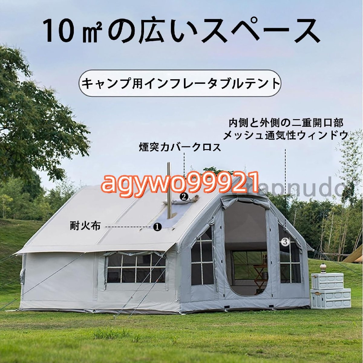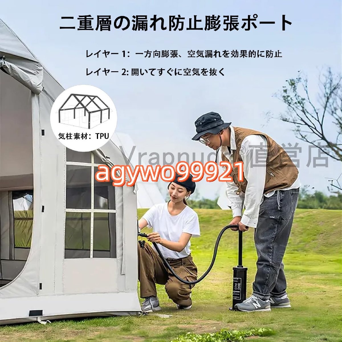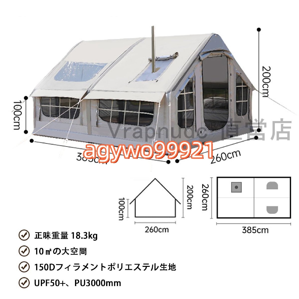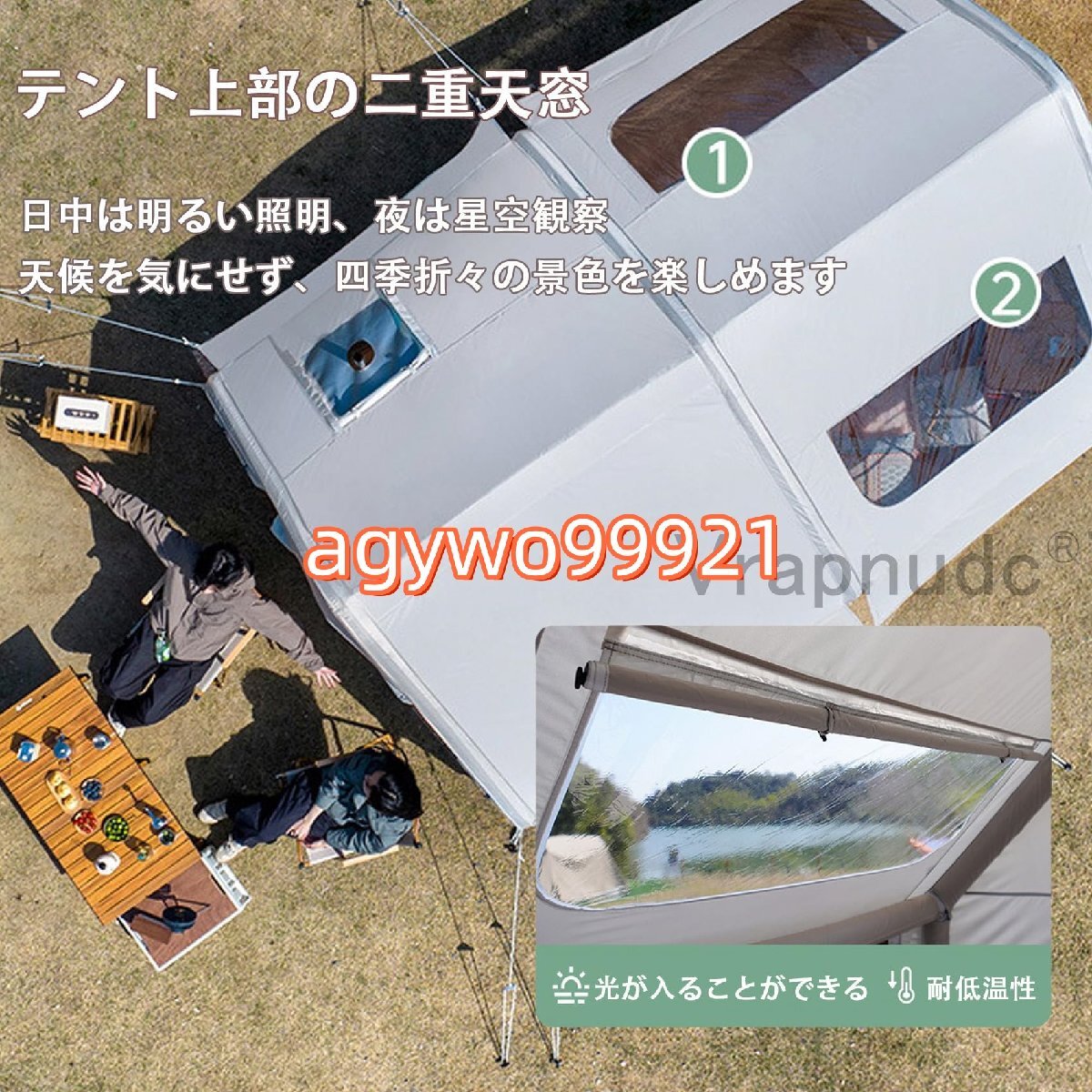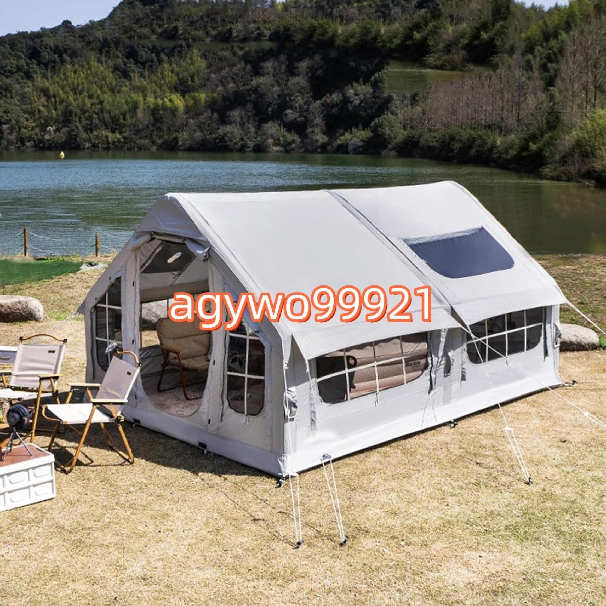 エアーテント 大型 6?8人用 インフレータブルテント 4シーズン グランピングテント 防水アウトドアオックスフォードテント キャビンテント 10平米 ファミリーエアテント 天窓付き 煙突穴付き ポンプ付き 通気防蚊虫 設営簡単