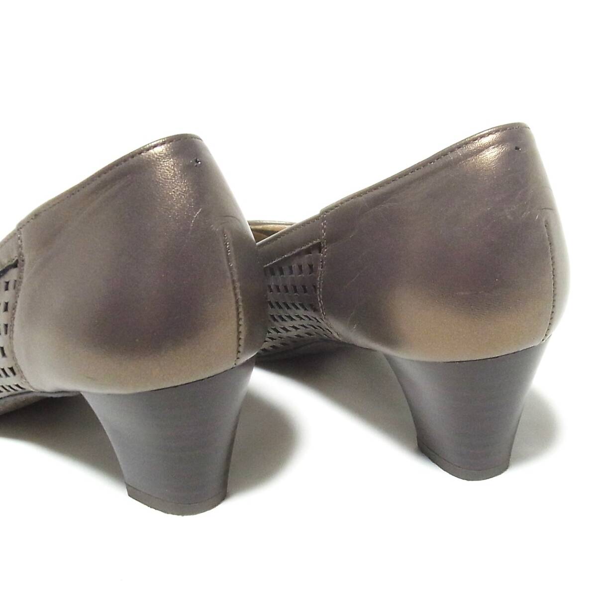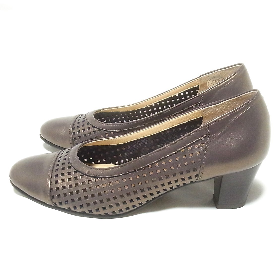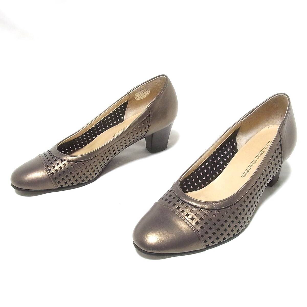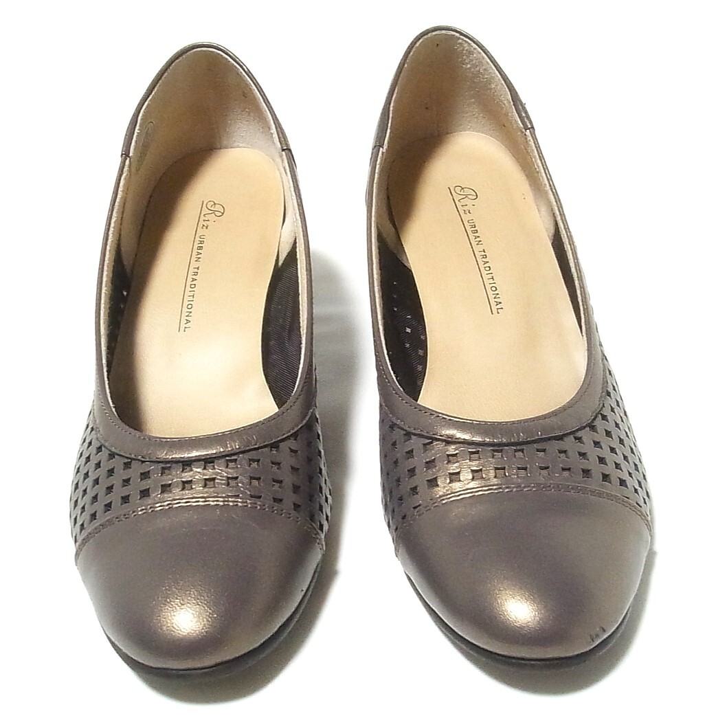 Riz URBAN TRADITIONAL 良品 リズ ブロンズ 本革 パンプス 23.0cm/幅広3E◎レザー ヒール5cm raffinee モードエジャコモ