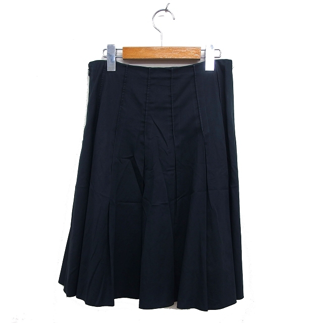 アンタイトル UNTITLED フレア スカート ひざ下 コットン 綿 タック サイドジップ 2 黒 ブラック /NT19 レディース