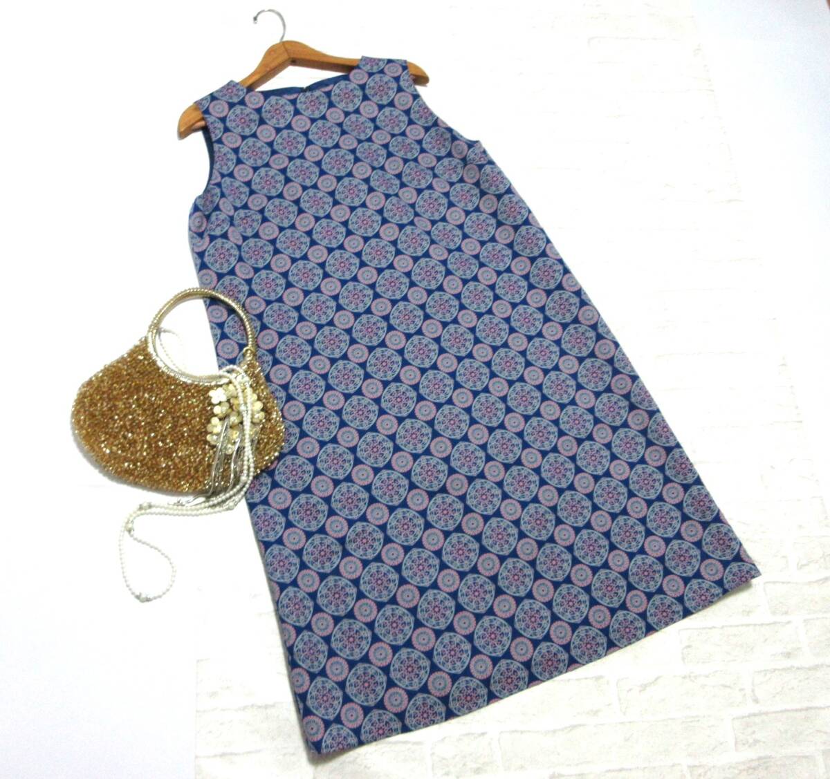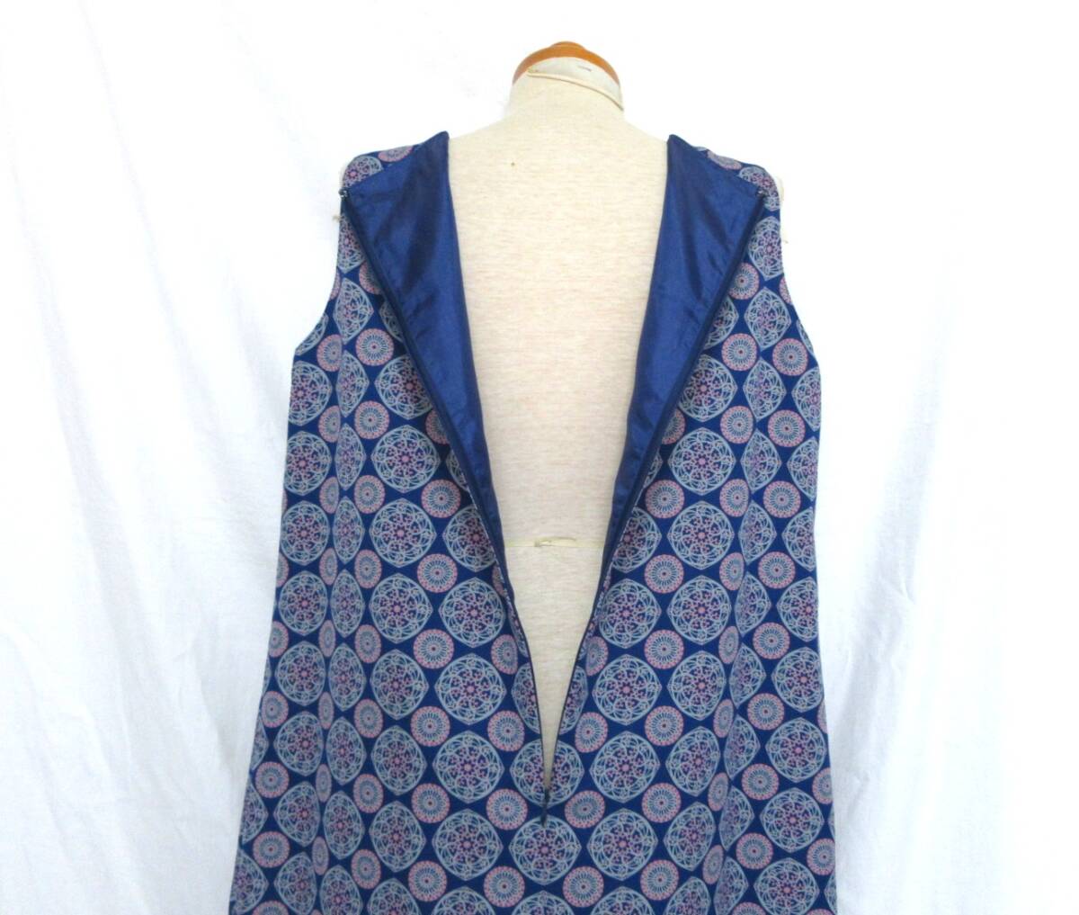 ブルーカラーのダマスクプリントが上品で品のある素敵な1枚です。 | ||