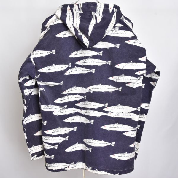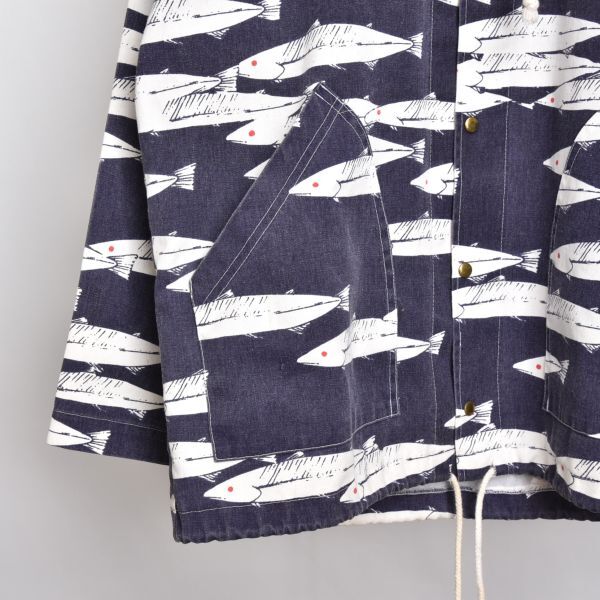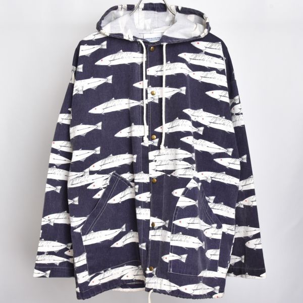 定番のフルスナップのフーディタイプのジャケットで非常に希少な魚柄のシルクスクリーンプリント。
