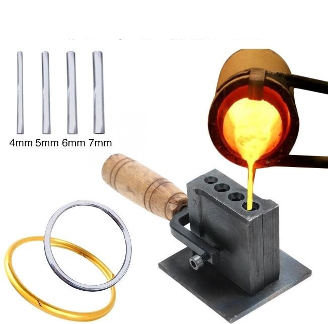金と銀のスクラップからインゴットを作るのに最適です。 それは可逆的です、従ってそれは棒およびシートを作ることで使用することができます。 4種類の棒の直径 - 8mm、6mm、5mm、4mmを作ることができます。 そして型の深さは61mmです、従って棒の高さは約60mmです。 持ち手を簡単にするための樹状のハンドル。 クランプが含まれています。 それはあなたが点検してきれいにするのがより簡単で、取り外し可能です。