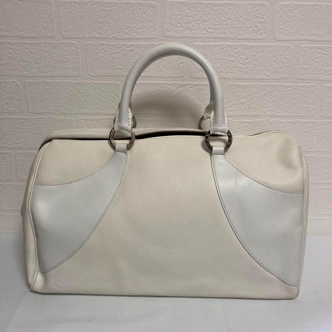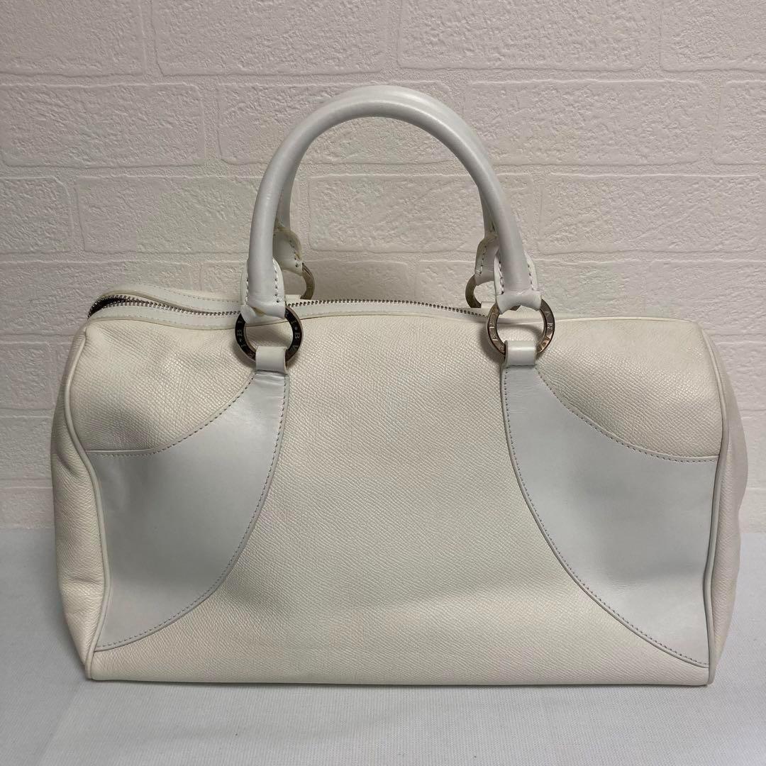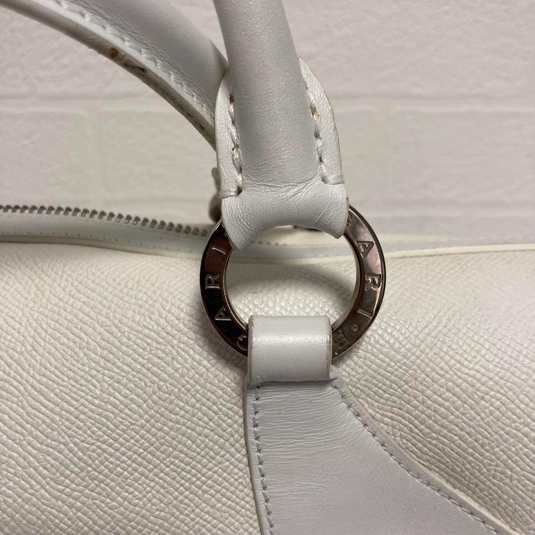 ブルガリ BVLGARI ミニボストンバッグ ホワイトカラー レザー リング ハンドバッグ 白 高級