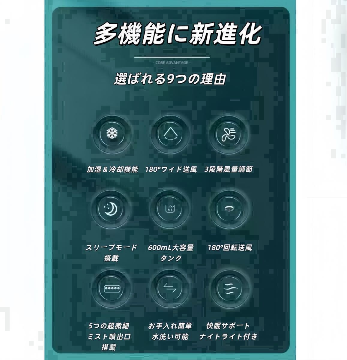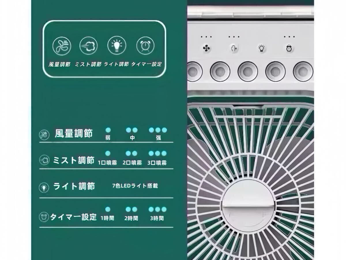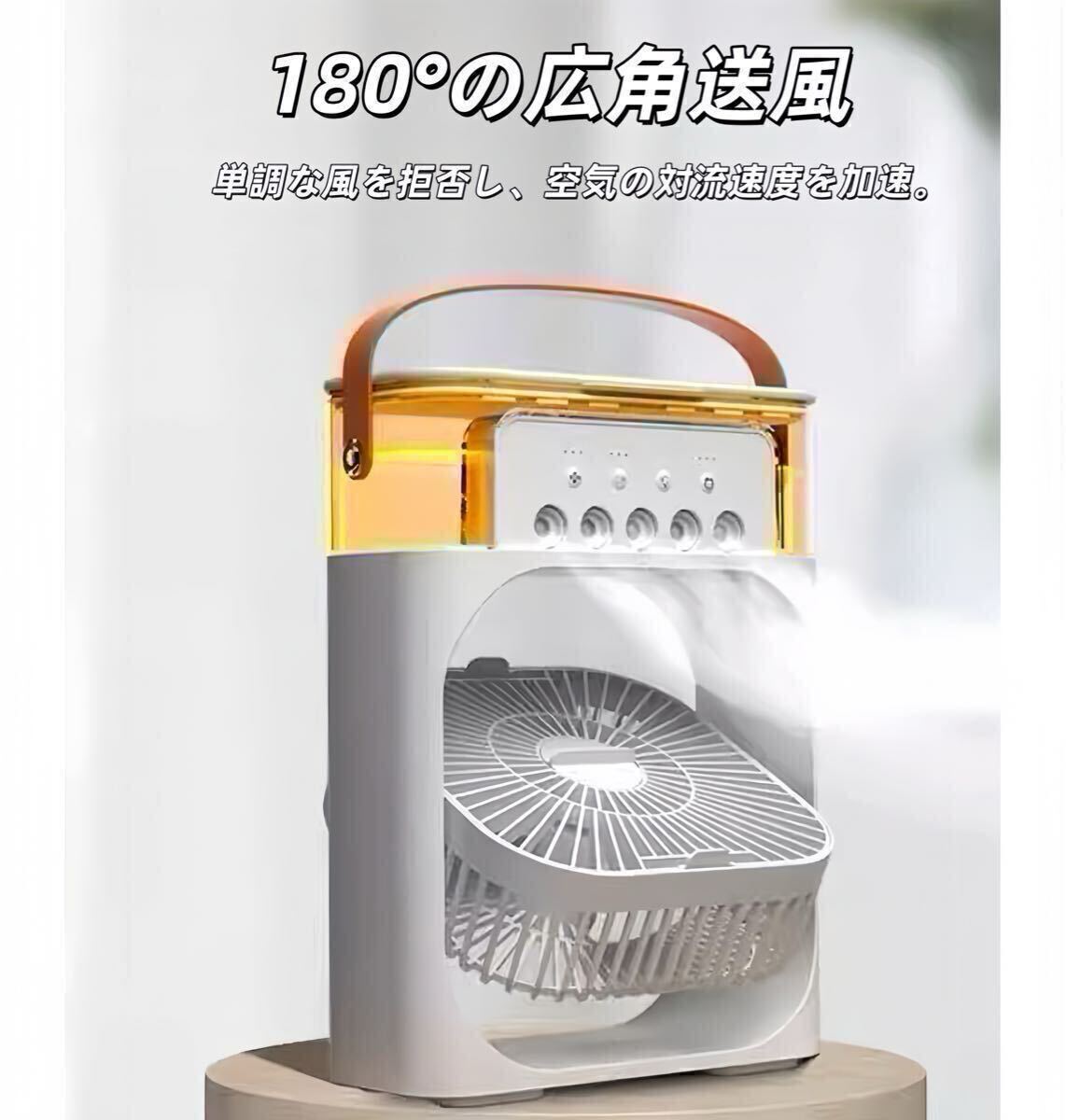 風+ミストのW効果で、猛暑でも瞬時に涼感アップ!タンクに水や氷を入れるだけで、冷却効果を高めながら肌の乾燥も防止。超音波ミストが微細に広がり、やさしい風で長時間の使用でも快適。