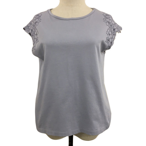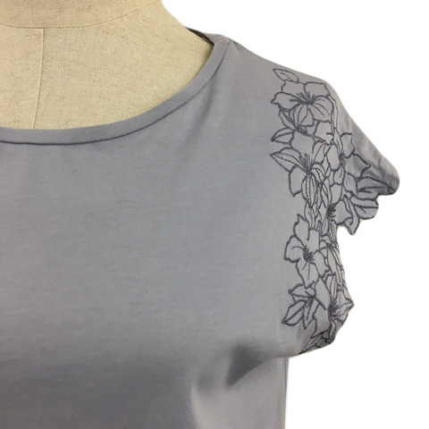 インデックス INDEX カットソー ラウンドネック プルオーバー 刺繍 フレンチスリーブ 半袖 L グレー レディース