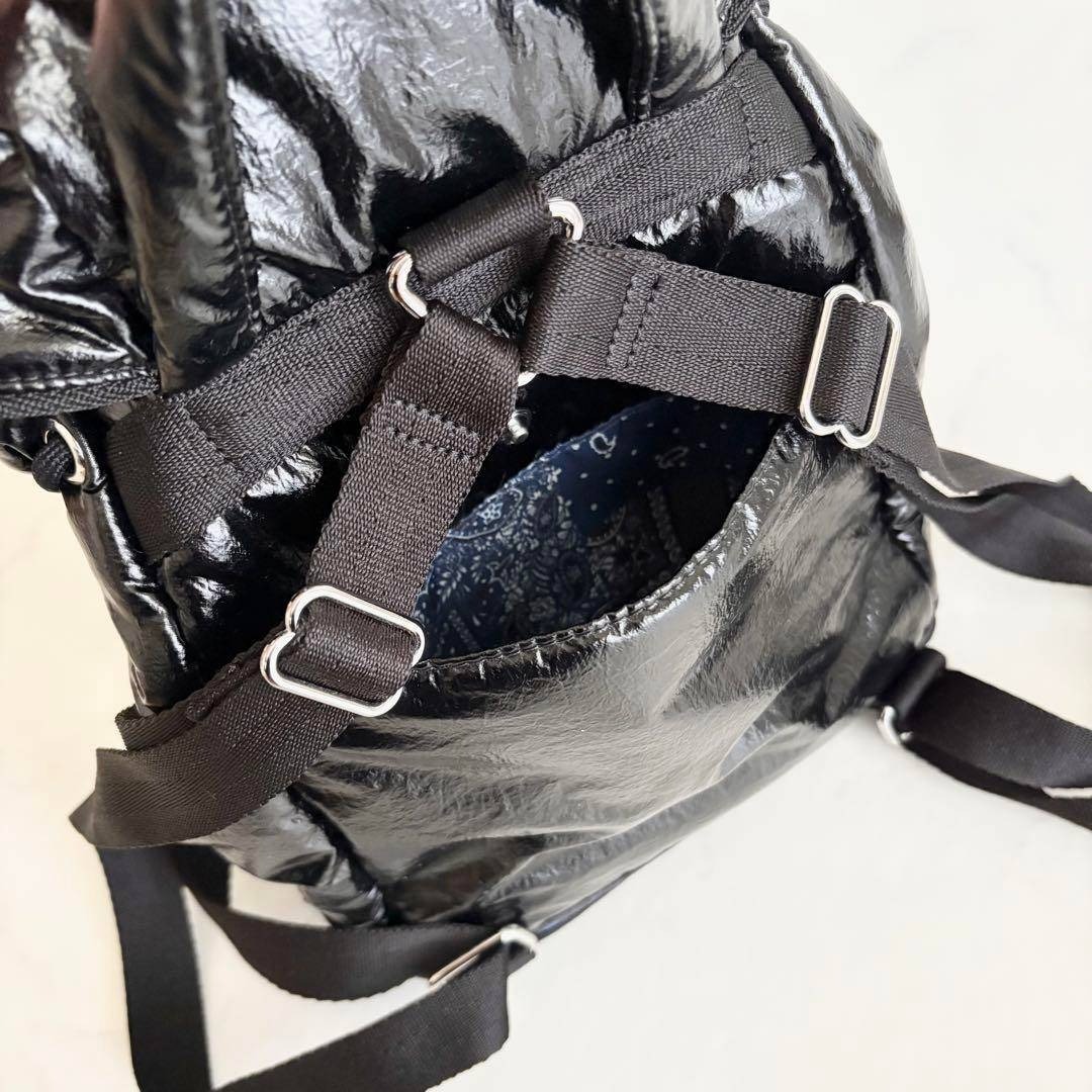 ・光沢感のあるパフィー素材で、洗練された都会的な印象。