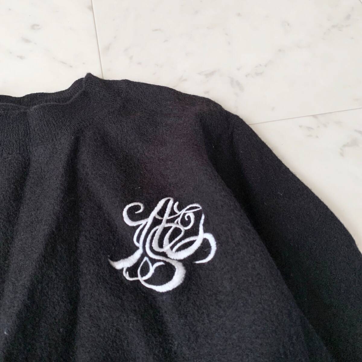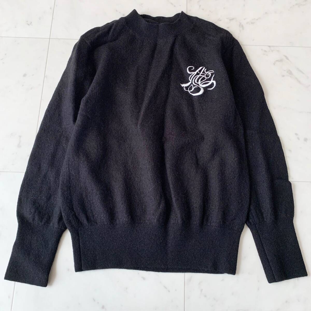 Arpege storyのロゴ刺繍入りニットです。胸元に施されたホワイトのエンブレム刺繍がシンプルながらも華やかさをプラスし、上品な印象を与えてくれます。カジュアルからきれいめまで幅広いスタイルに合わせやすく、オフィスシーンやデイリーのお出かけにも活躍する一枚です。柔らかく保温性の高い素材感で秋冬に重宝するアイテムです。