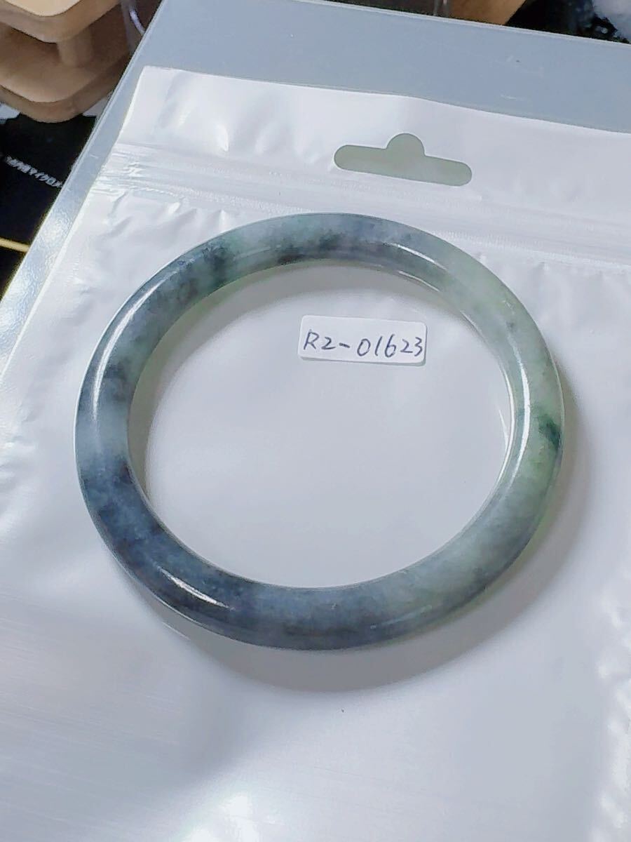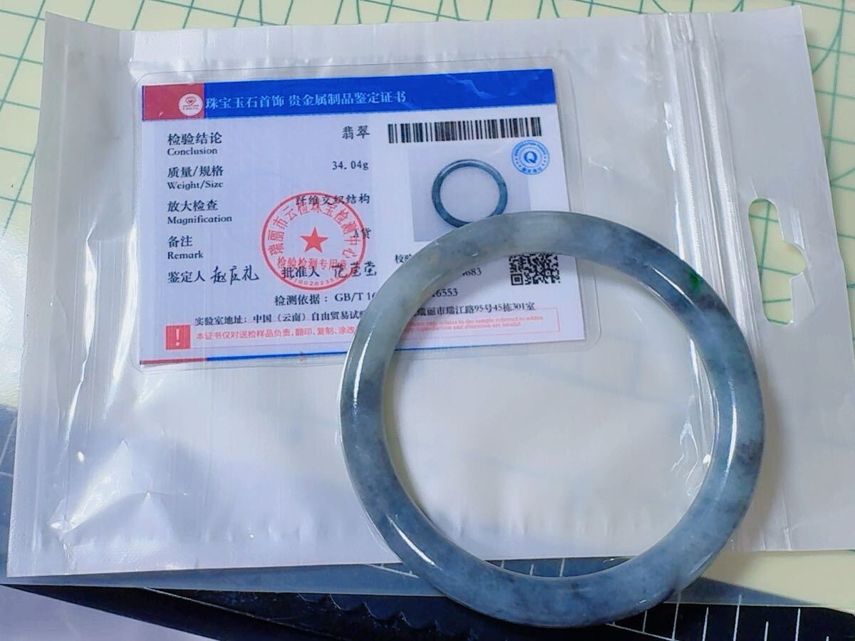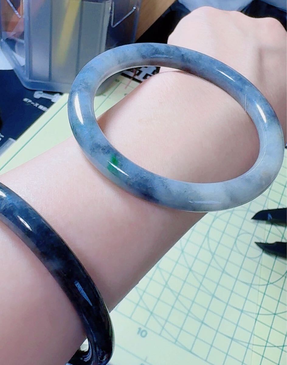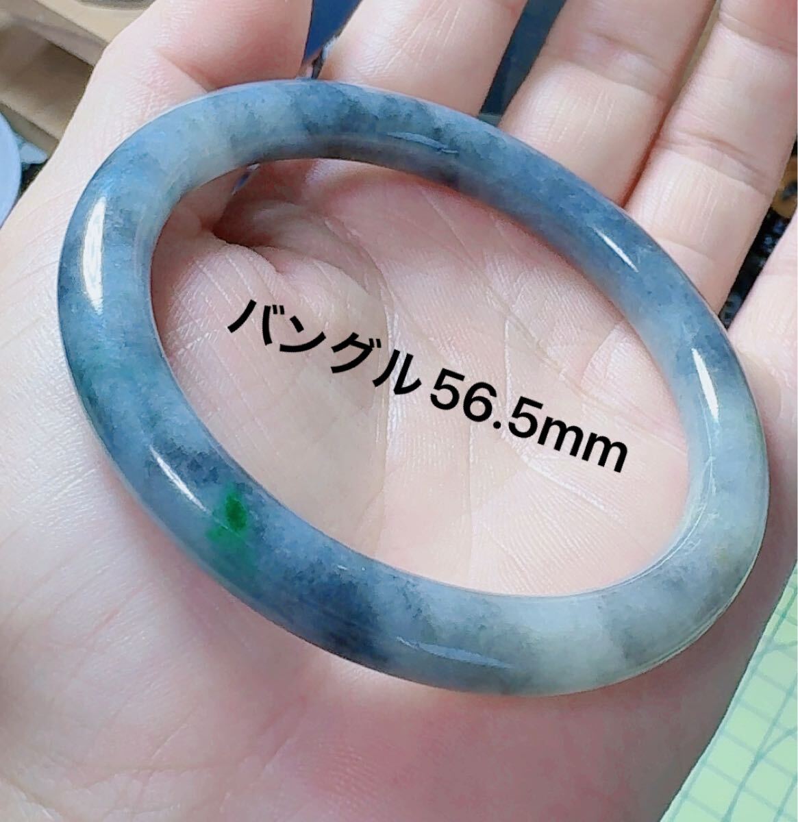 R2-01623天然本翡翠《本物保証》黒鳥鶏種緑入り 美品 完璧 翡翠バングル56.5mm 一点物 希少 縁起物 お守り パワーストーン 海外鑑定書付き