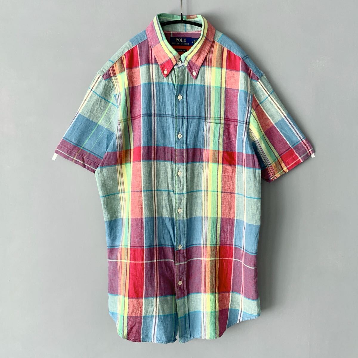 POLO Ralph Lauren リネンコットン マドラスチェック BD 半袖シャツ