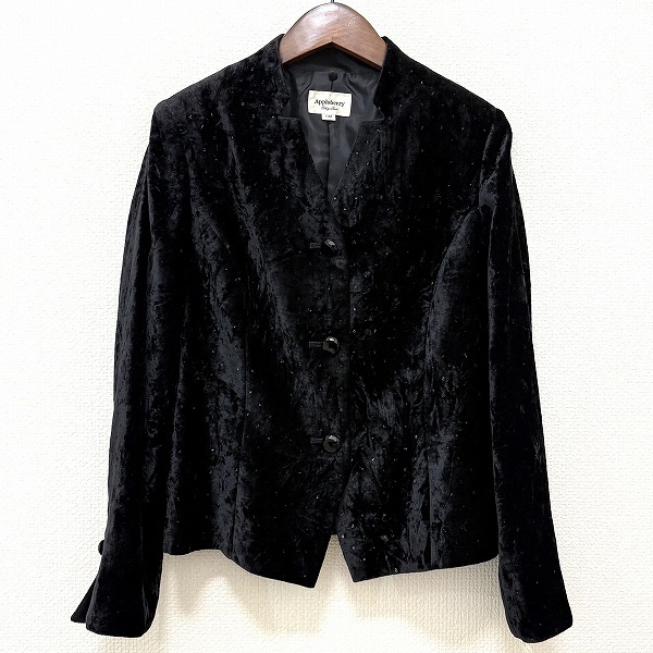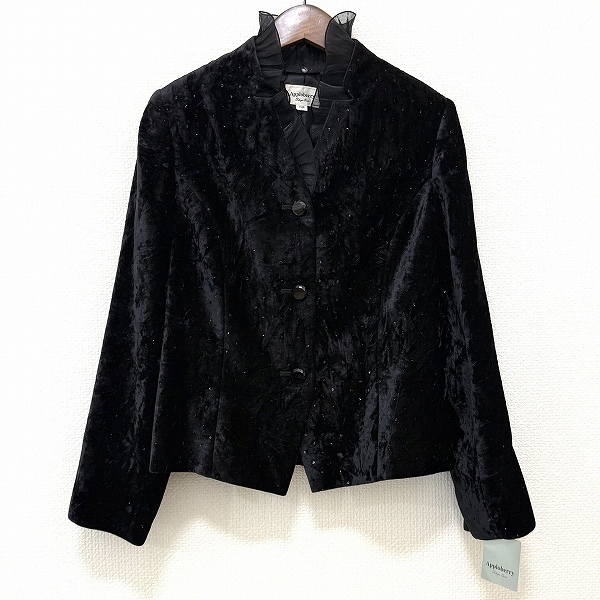 #wnc 東京ソワール アプロベリー Apploberry ジャケット 11AR 黒系 ベロア調 ラメ フリル タグ付き 新品同様 レディース [961859]