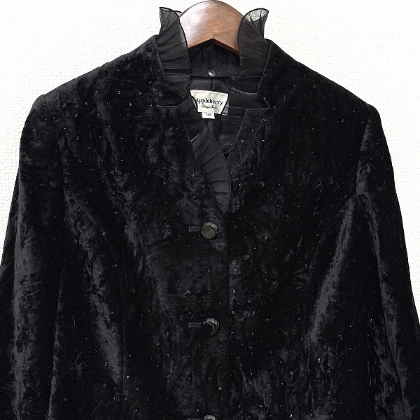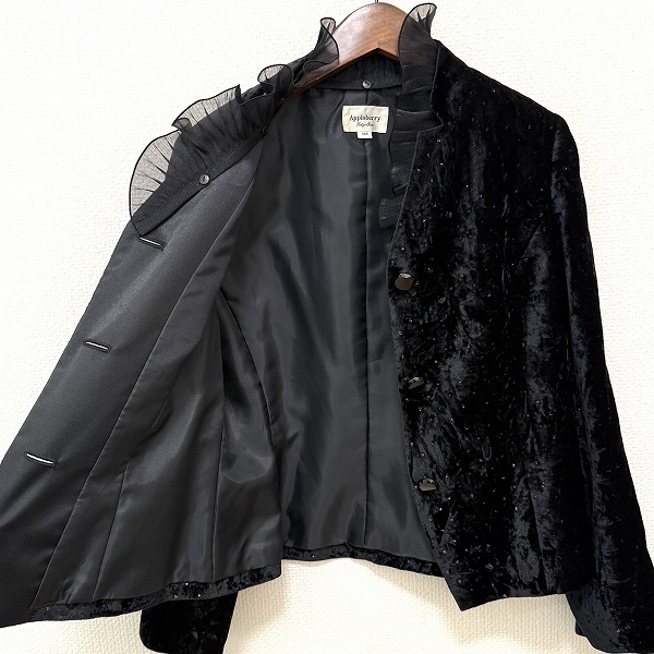 ●商品名(タイトル):#wnc 東京ソワール アプロベリー Apploberry ジャケット 11AR 黒系 ベロア調 ラメ フリル タグ付き 新品同様 レディース [961859]