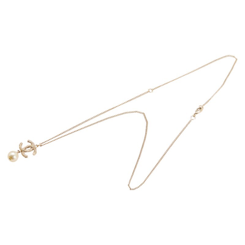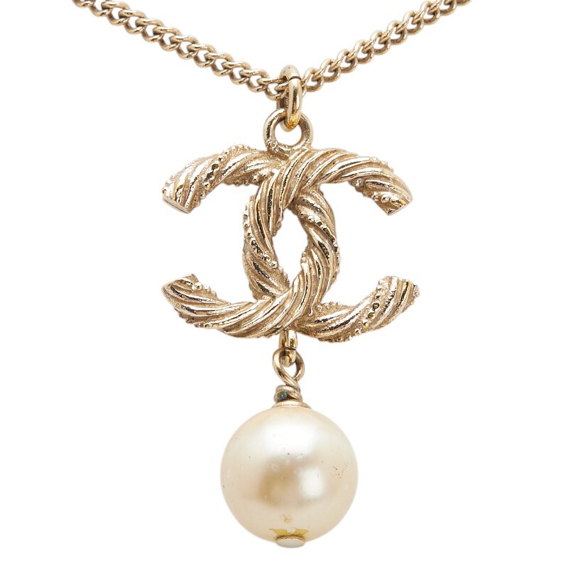 シャネル ココマーク ペンダントネックレス ゴールド メッキ フェイクパール ラインストーン レディース CHANEL 【中古】