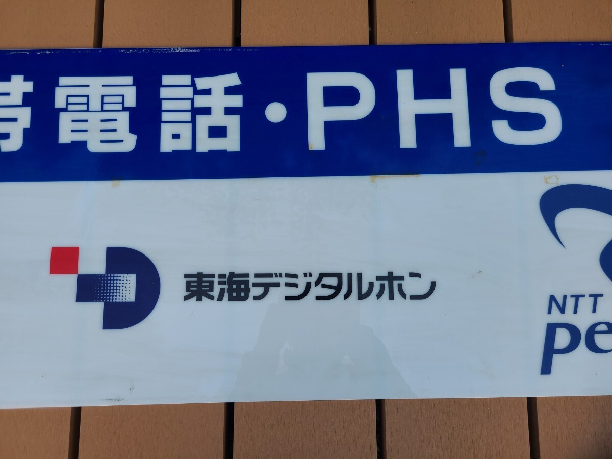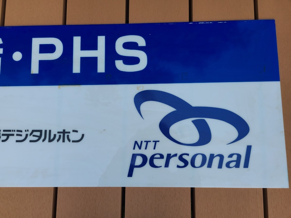 ソフトバンクの前身系譜にあたる東海デジタルホンと、NTTのPHS事業であるNTT personal(NTTパーソナル)のロゴが並ぶ時代の面板で、1990年代中~後期(目安:1995年〜1998年頃)の当時物かと思われます。