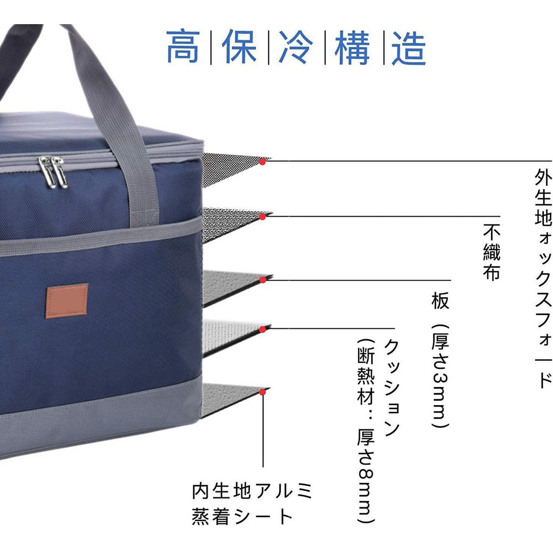 【保温・保冷】保温・保冷に最適な保冷機能付きランチバッグです。5層構造の保温材により、保冷・保温に優れています。外層は600D高密度オックスフォード生地。内側の層はアルミ箔(食品グレードの低熱伝導率);中間層は8mm EPEフォーム(断熱材、衝突防止、クッション)です。