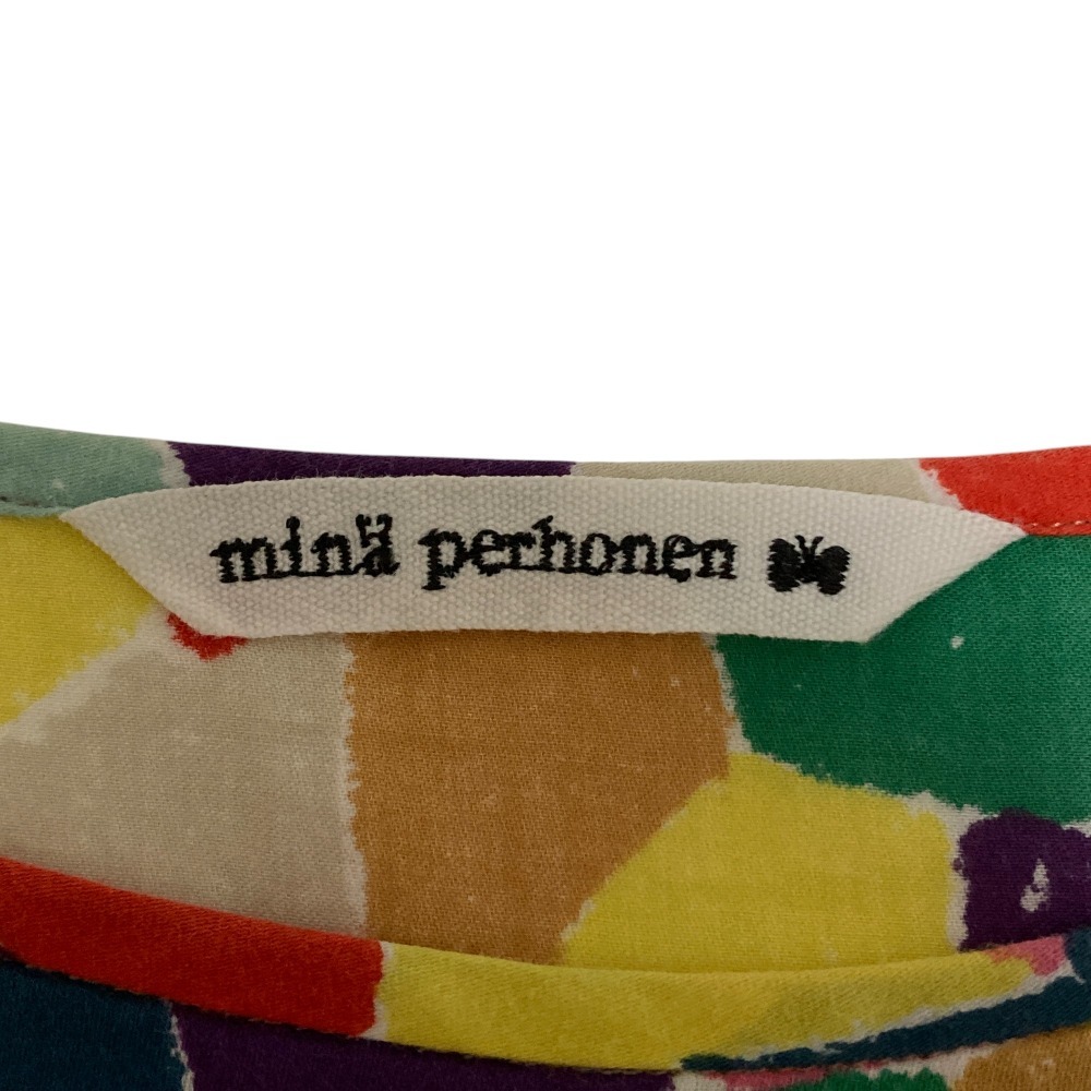 美品 mina perhonen ミナペルホネン piazza モザイク柄 ロングスリーブ ワンピース sa3121 サイズ36 マルチカラー