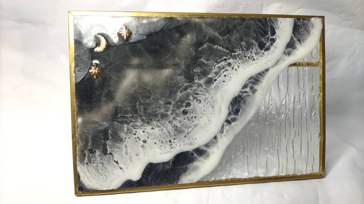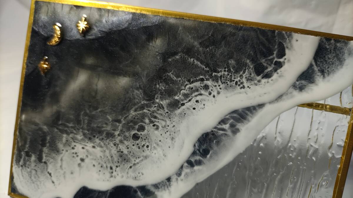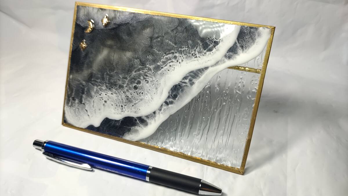 ★夜の海★ ディスプレイスタンドフレームスタンド 机上アクセサリー 新品未使用 送料無料 レジンアート アート 芸術