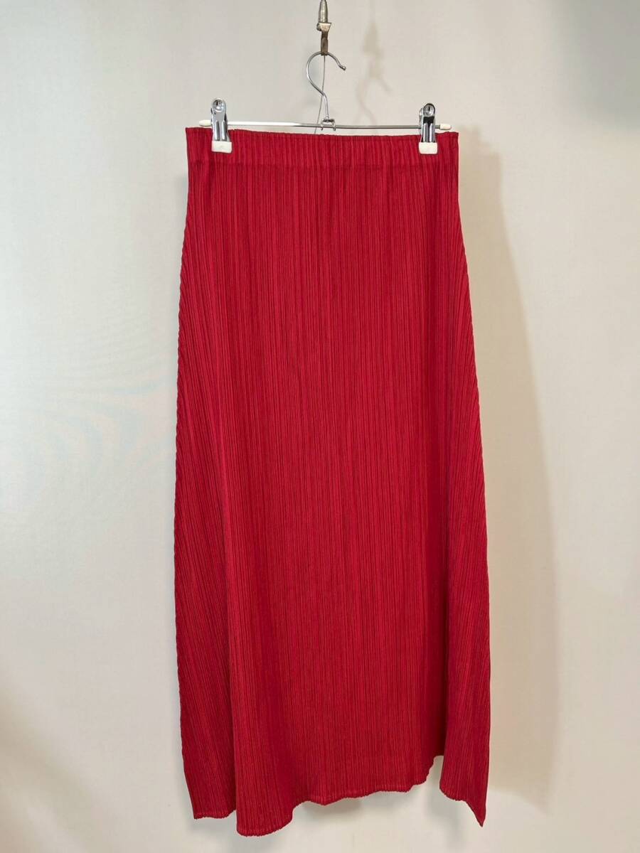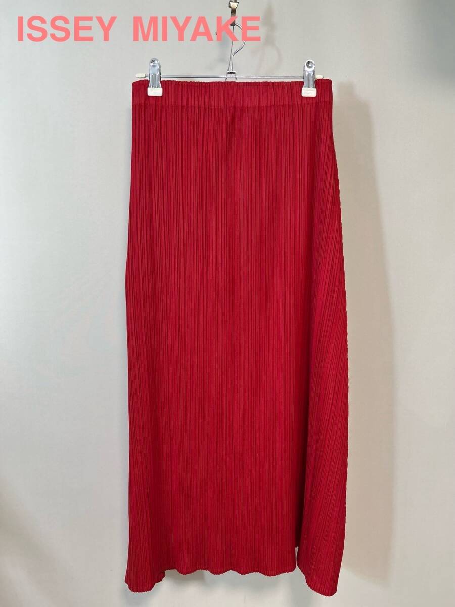 I0089★10 高級 PLEATS PLEASE ISSEY MIYAKE プリーツプリーズ イッセイミヤケ ウエストゴム ストレッチ生地 スカート ロング 赤 JPタグ