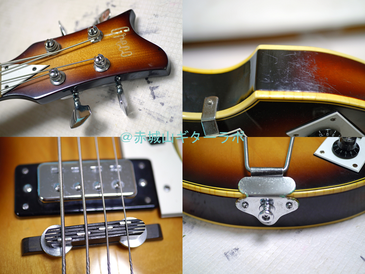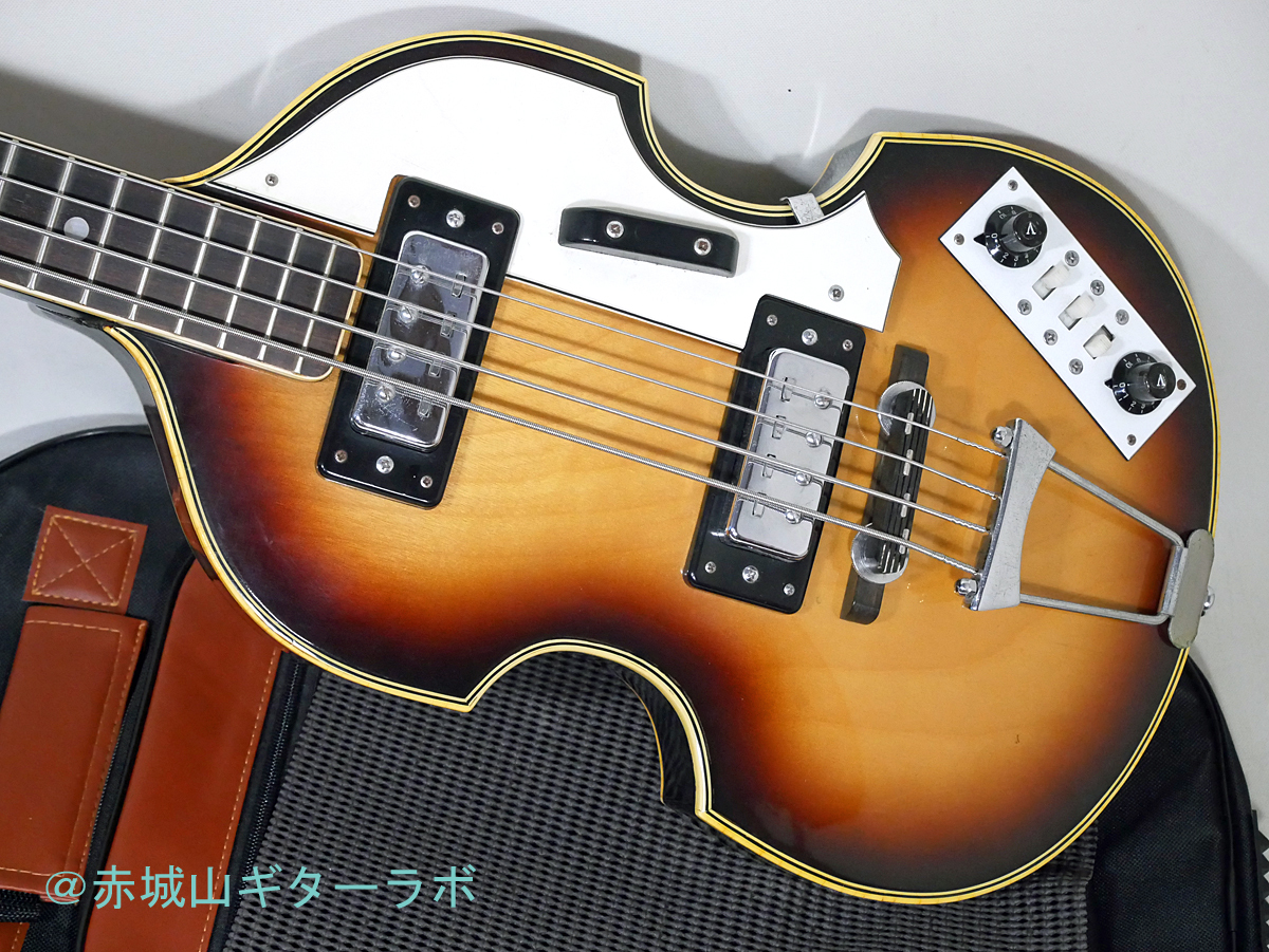 ご覧頂きありがとうございます。 今回出品するのは、国産Greco ベースギター Model No. VB360 です。 当時定価3万6千円のHOFNERバイオリン型ベースのコピー品です。 シリアル番号の頭が74から始まりますので、1974年に富士弦楽器の製造と思われます。 当時の販売タグと、メーカー保証書の保存がありましたのでお付け致します。 当方の状態の判断は5段階評価で [外観 3+] [音 5] となります。 尚、出品の評価はあくまで当方の主観です。 国産ビンテージベースギターはその価値が広くベースギターファンに認知されておりますので、今後も売買価格が高く維持され、財産的な価値が期待されます。 是非この機会に、入札のご検討をお願い致します。 VB360の主な仕様 ボディ:バーチ(ホロウボディ) ネック:デタッチャブルネック・指板ローズ ペグ:カバー付き・クローム PUフロント・リア入-切スイッチx2、トン切替スイッチx1、ボリュームコントロールx2 (HOFNERオリジナルと同構成) 以下に本器の状態を記載致します。 アンプに接続して両PU共に音出しを確認しました。 耳障りなガリノイズや接触不良も有りません。 ボディ全体にやや目立つスリ傷や打痕もありますが、板の割れは見られません。 金具にややサビ浮きが見られます。 ネック裏は当て傷やヘッドエッジの塗装欠けも見られません。 オリジナルペグはメッキ表面もピカピカで、動きもスムーズです。 弦高は12フレット上で4弦側で約3.0mm、1弦側で約2.5mmで、可能な限り低く弾き易い高さに調整してあります。 サドルは駒に凹みが見られましたので、4個交換して有り現状凹みは有りません。 ナット巾はノギス計測で約40mmです。 フレット残りは9割以上です。 ネックは指板側がほぼストレートになるよう調整してあります。 アジャスタブルロッドは、若干の調整余裕が見られました。 部分的に目立つ傷も見られますが、まずまずの美品コンディションです。 画像にある新品のソフトGIGバッグにお入れして、クロネコヤマト宅急便180サイズにて、全国に発送の予定です。 尚、トラブル防止のため、商品返品については下記とさせて頂きます。 ------------------------------------------------- 当方の出品は数年を経過した一般中古品ですので、説明の行き届かない細かな傷や落としきれない汚れ、消耗品の劣化などがあり、全てを十分に説明するのは不可能です。 傷を故意に隠して出品するなどという行為はしておりませんので、返品トラブルに多い「思っていなかった傷がある」等、きれいな品を期待をされた結果による傷み等を理由とした返品のお申し出には対応できませんので、十分な落札検討とご了解を宜しくお願い致します。 明らかに当方の見落としに因る瑕疵があった場合には、真摯に返品の対応をさせて頂きます。 但し、下記の免責事項を設定させて頂きます。 ・掲載写真で判断可能な傷や変色等 ・拡大鏡を使って判別できる傷等 ・板の杢目や変色等 ・塗装の白濁等 ・本体内部など、通常見えない汚れや傷等 ・ウェザーチェックなど、強度に影響のない塗装の割れ等 ・金属部品の劣化等 ・消耗品(弦・ナット・サドル・フレット)の劣化等 ・演奏に影響のない指板の減り等 ・通常の清掃で落ちる汚れ等 ・本体やケースの生活臭等 尚、到着日から5日を過ぎますと返品には対応出来ませんので、受け取り頂きましたら速やかに状態に問題がないか検品の上、取引ナビ画面より「受取連絡」を頂きますよう宜しくお願い致します。 このギターは出品時にレギュラーチューニングで問題ない事を確認しております。 オープンチューニングなど変則チューニングでの使用は返品対象外とさせて頂きます。 その他ご不明な点は入札前にお気軽にご質問下さい。 尚、自己都合のキャンセル並びに返品は「非常に悪い」評価を付けさせて頂きますが、 評価を受けたくない落札者さまには、「Yahoo落札手数料(落札代金の10.0%)+返送送料」 をご負担頂ければ、無条件にて返品をお受け致します。 ------------------------------------------------- 当方の都合で予告無く出品を取り消す場合がございますが、何卒ご了承下さい。 古物商群馬県公安委員会許可 第 421202021004 号 道具商 ※当方は個人事業主の消費税免税事業者につき、適格請求書発行事業者適応外です。※ |