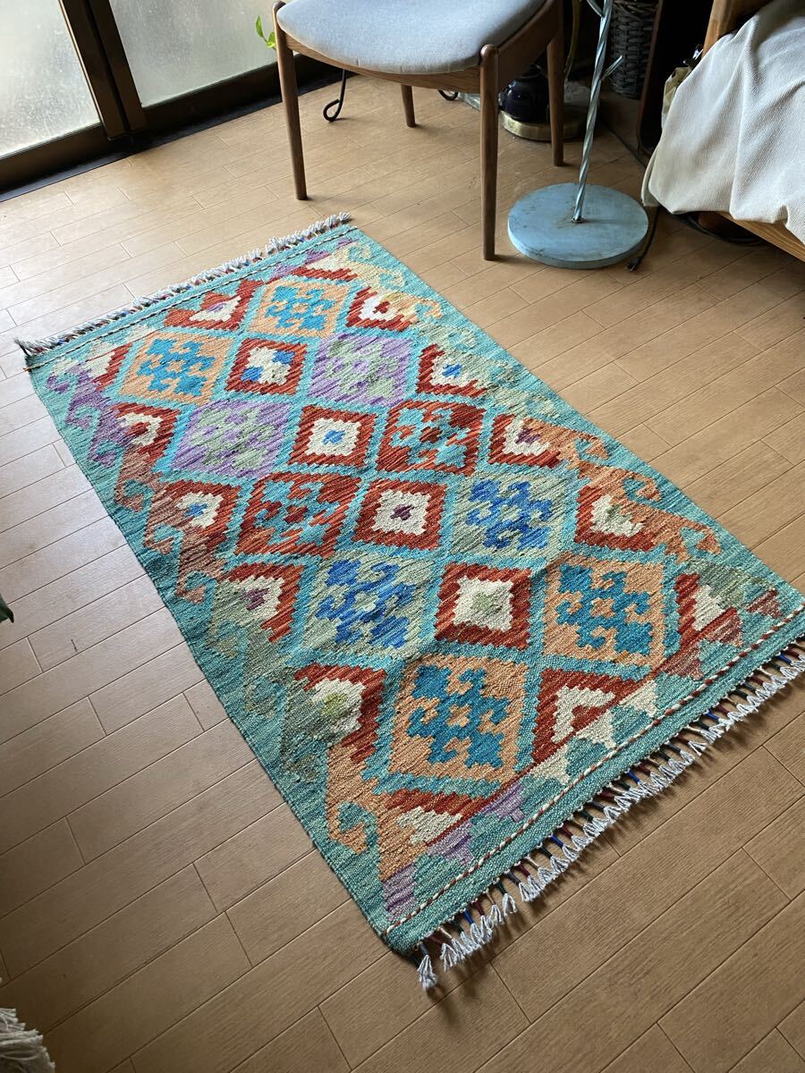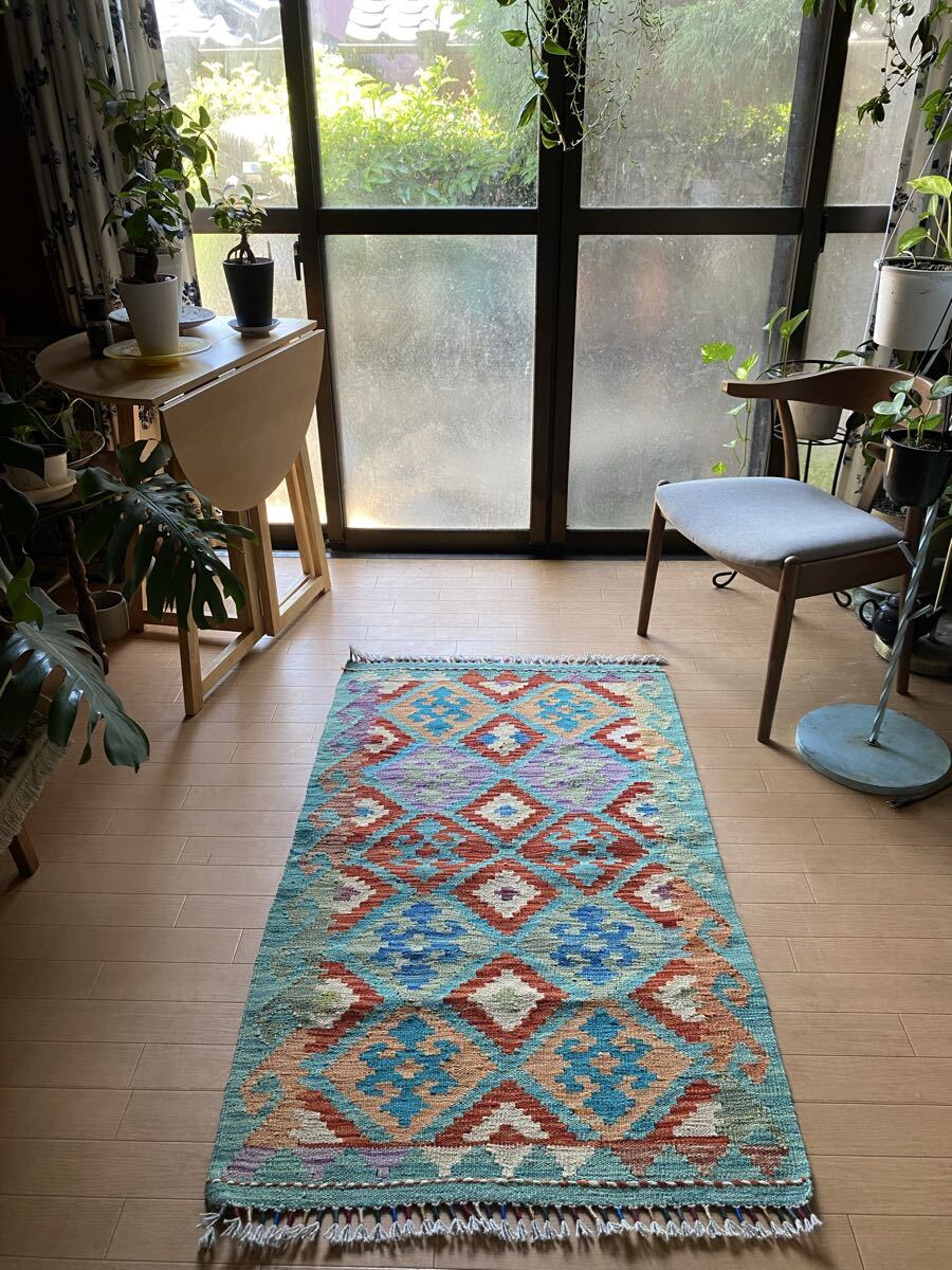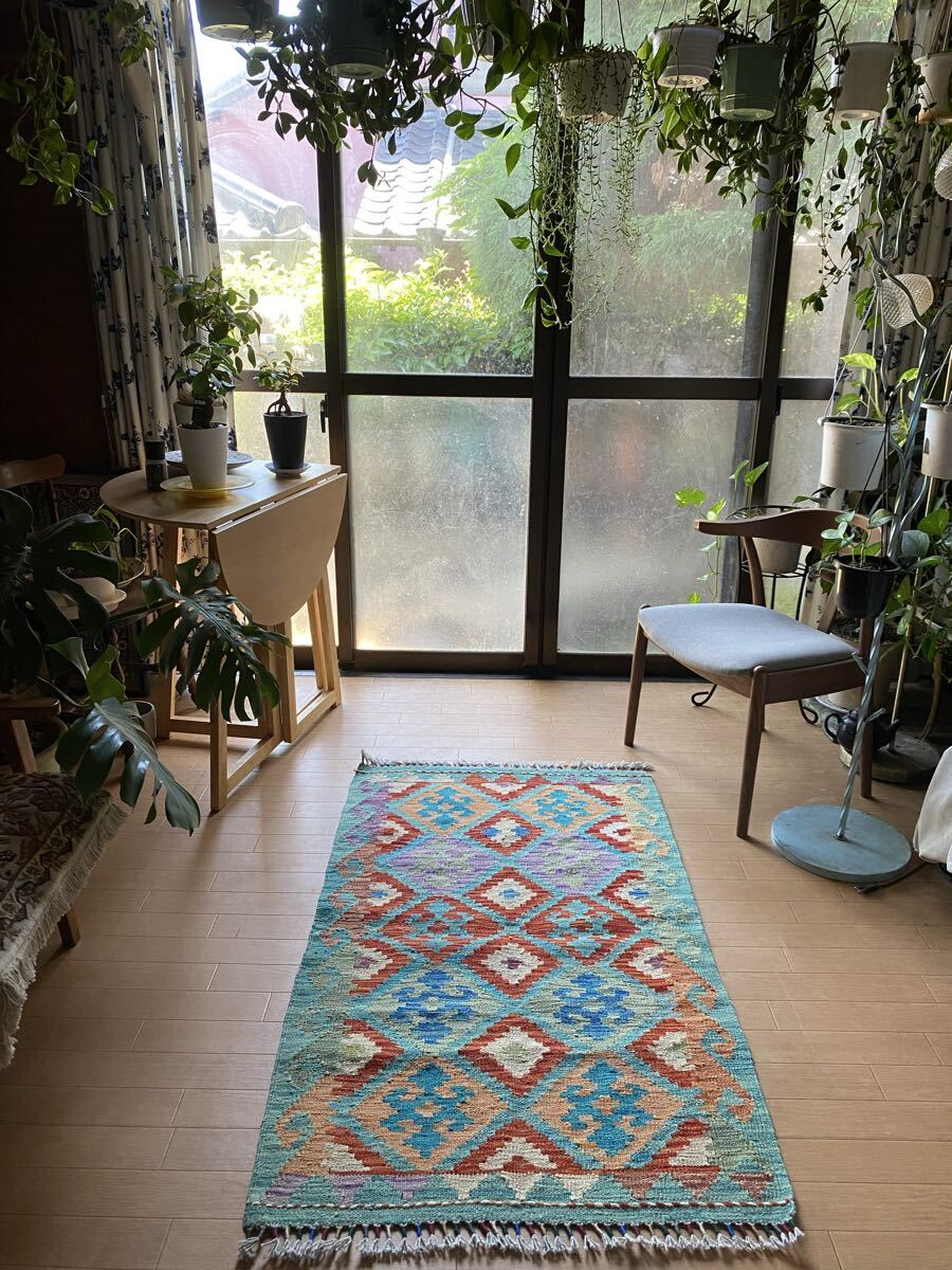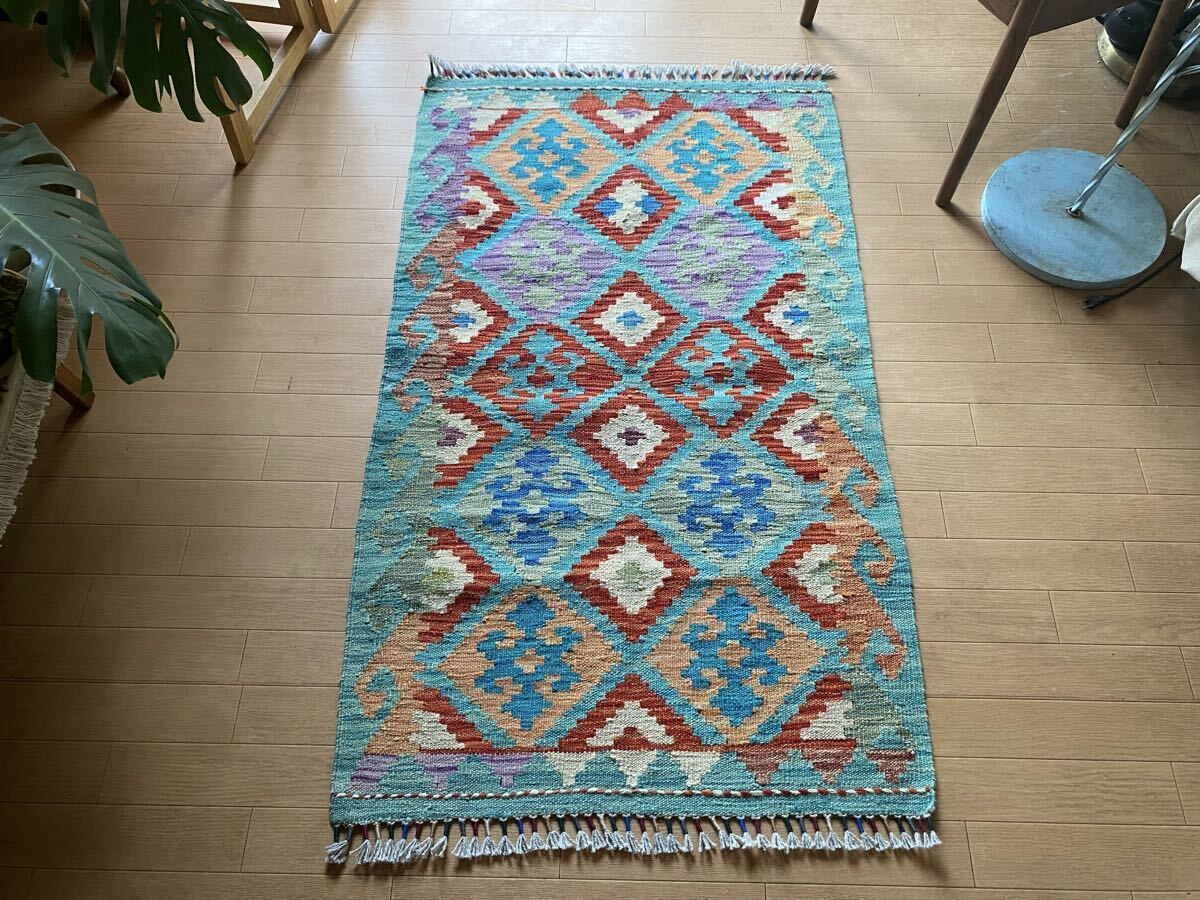 キリム初めての方にも是非お勧め!キリム一枚で素敵な癒しの空間づくり!手織り草木染細かい織アフガニスタンキリム78×130送料込み
