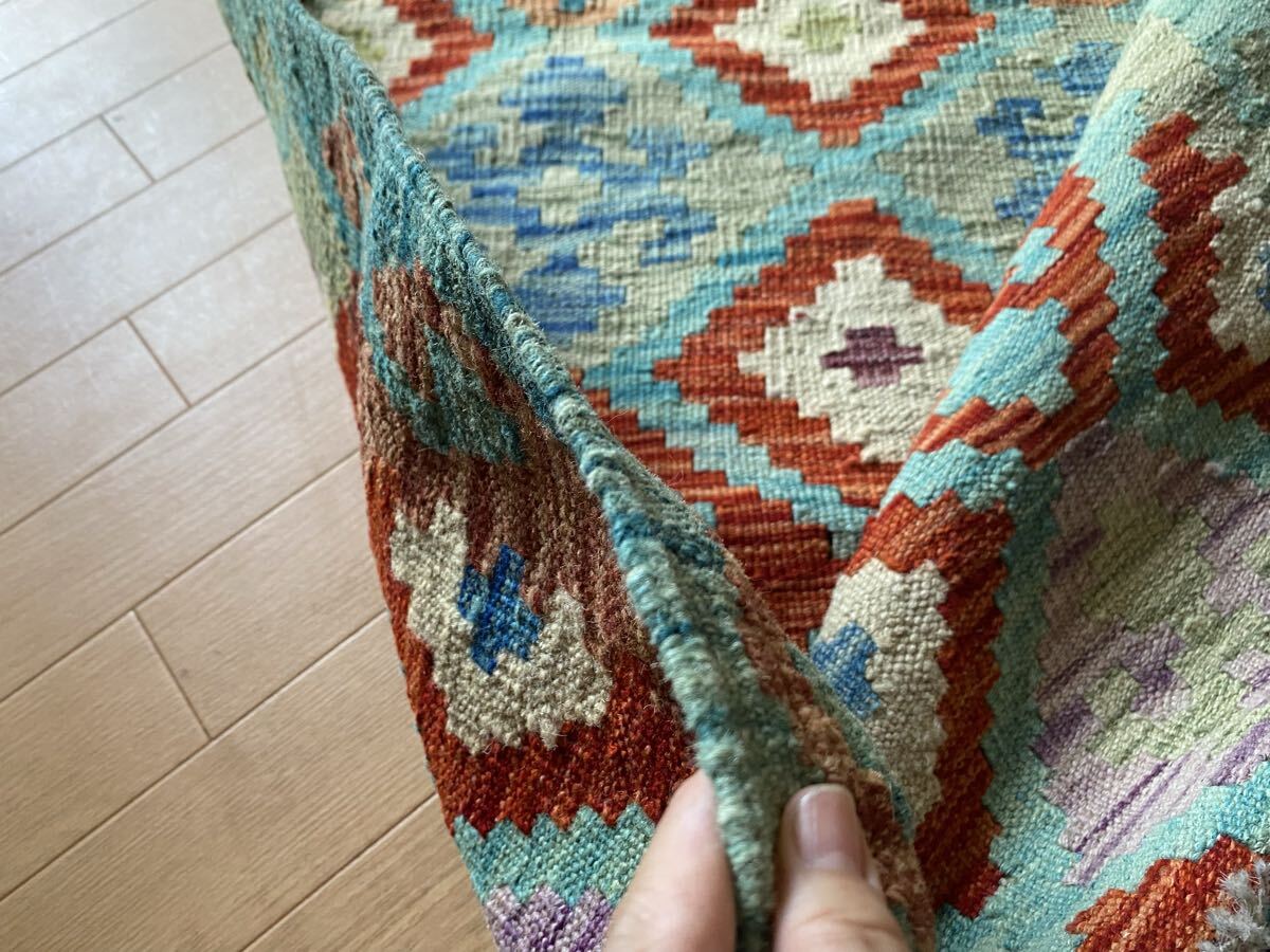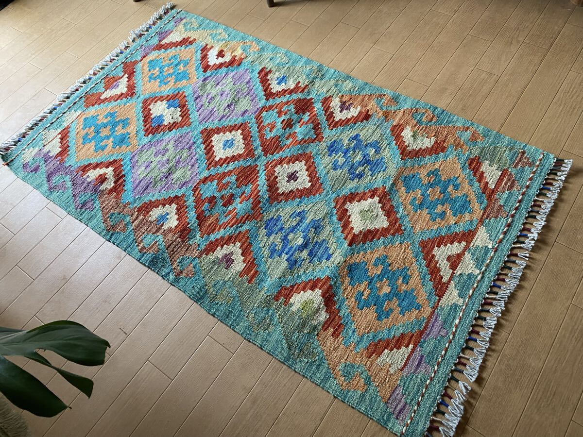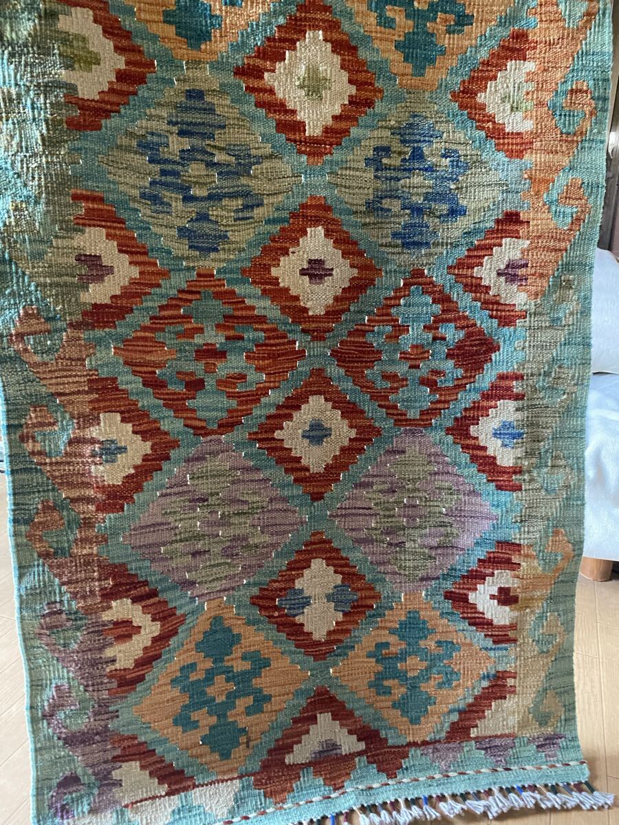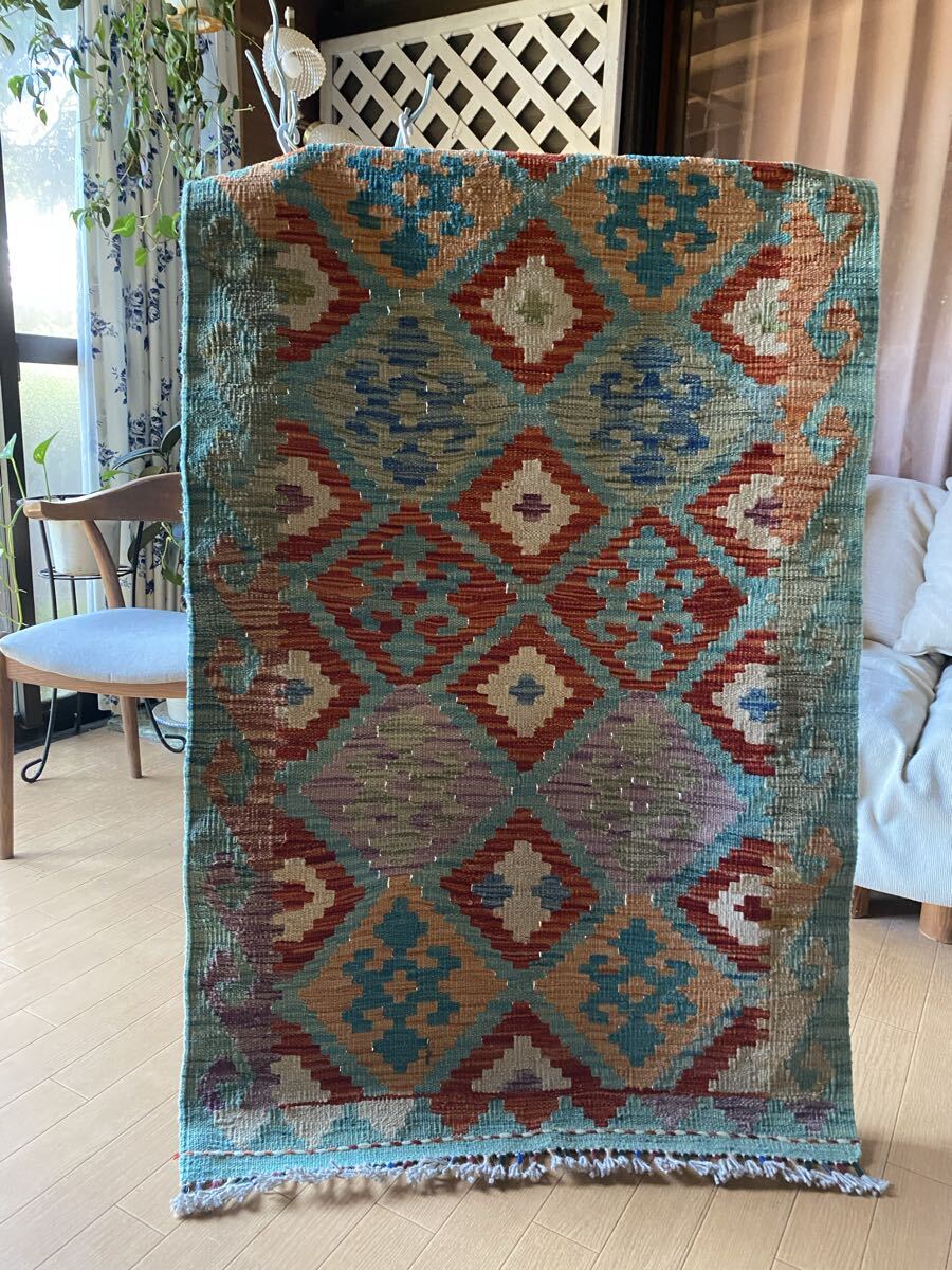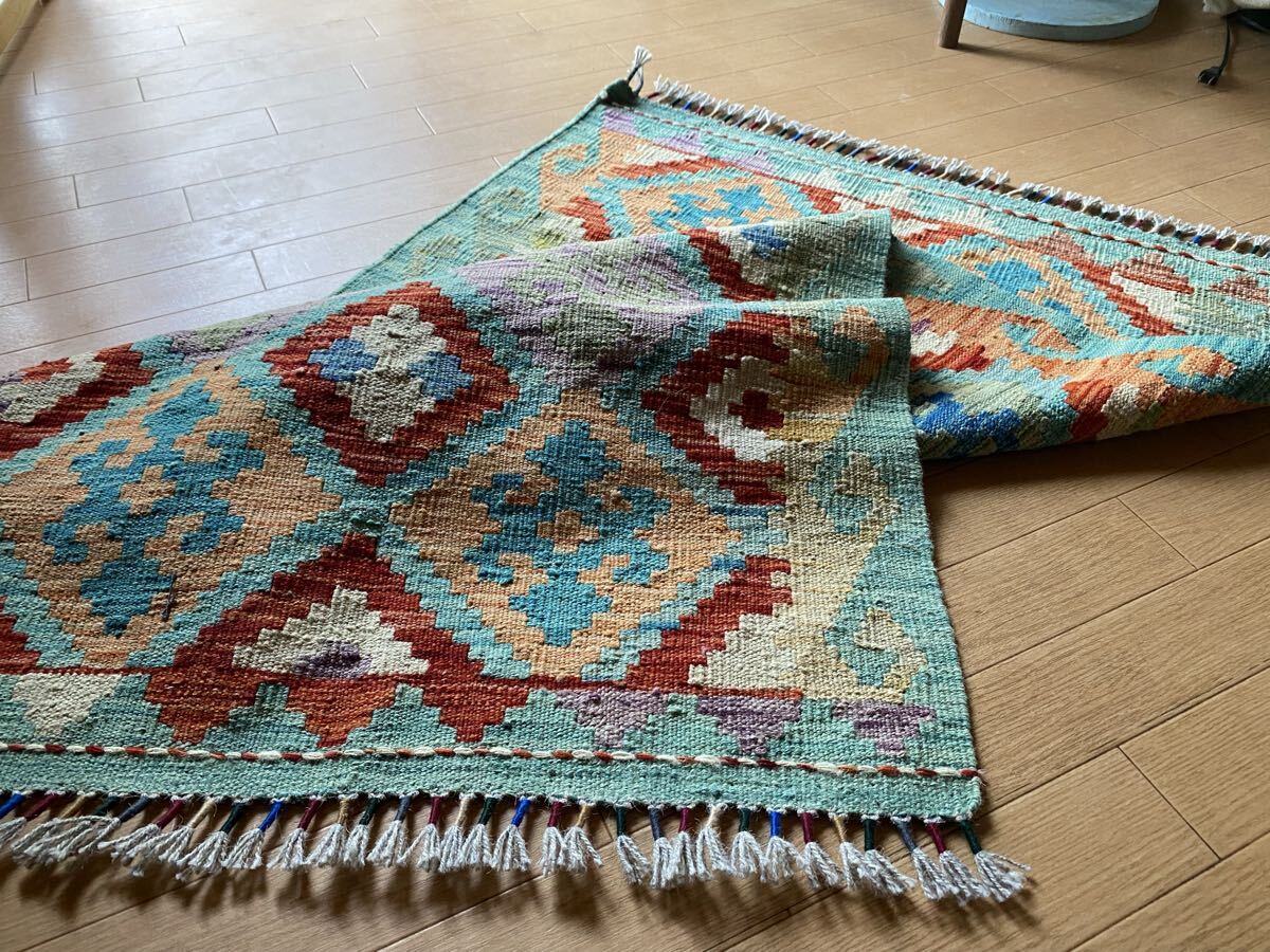 キリム初めての方にも是非お勧め!キリム一枚で素敵な癒しの空間づくり!手織り草木染細かい織アフガニスタンキリム78×130送料込み