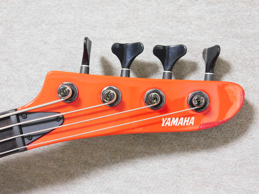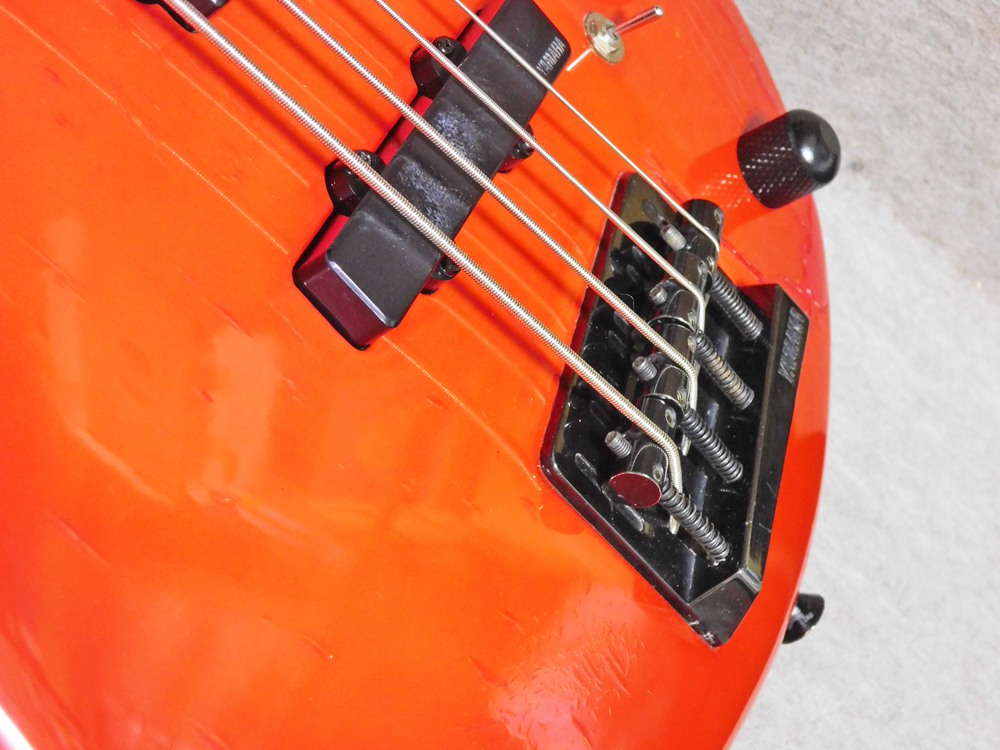 【変更点】本来はアクティブ仕様ですが、基板を除去してパッシブに変更してます。ミニSWは、本来はスラップ奏法用のサウンドに切り替える役目ですが、ボリュームのバイパスに変更してます。元々のプリアンプは基本的には正常に作動しますが、出力パワーがかなり小さくなっていた為、上記の様に変更しましたが、サウンドはヤマハらしい十分なクオリティーです。