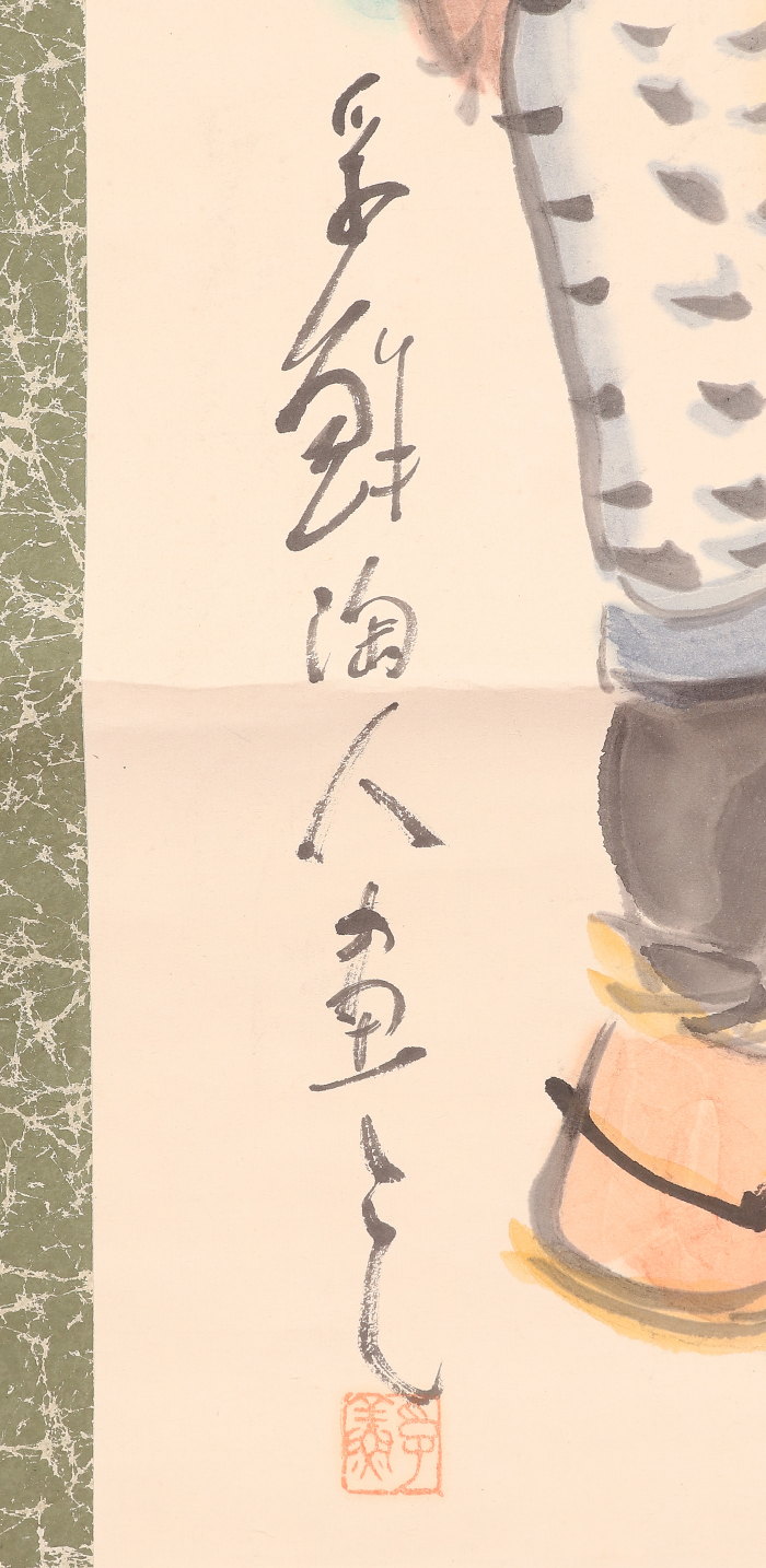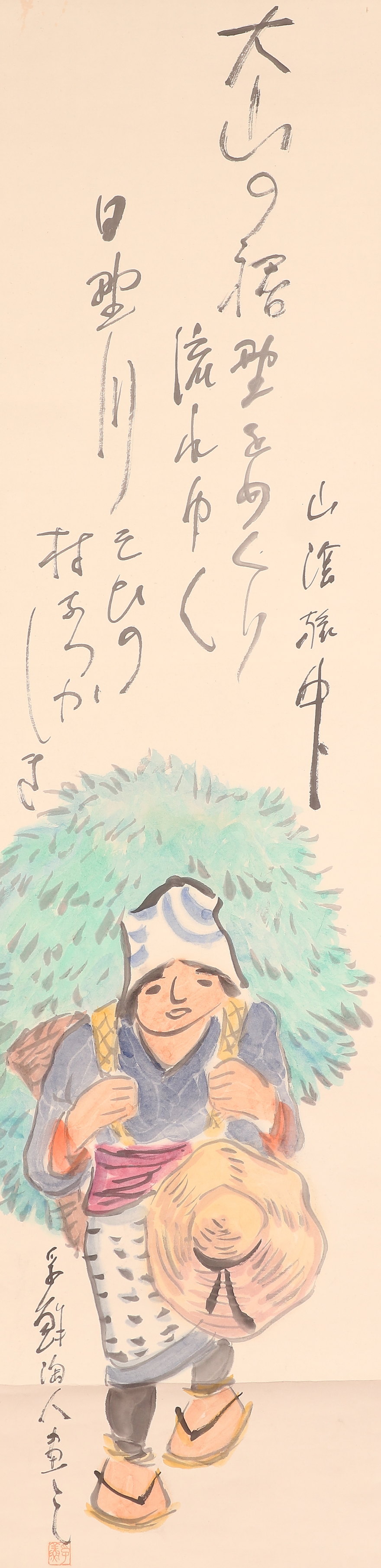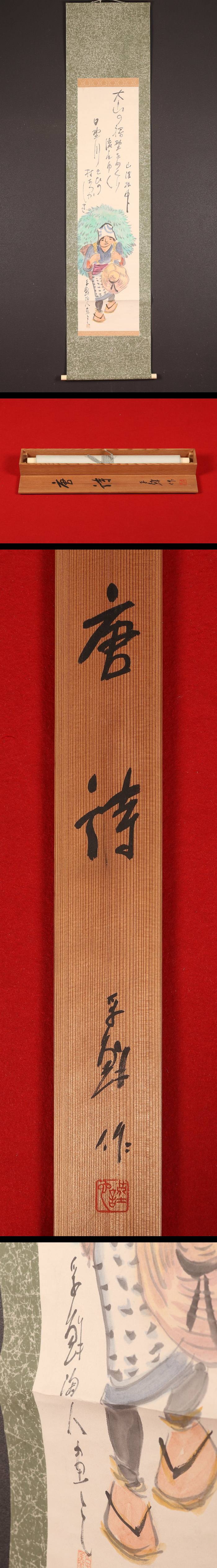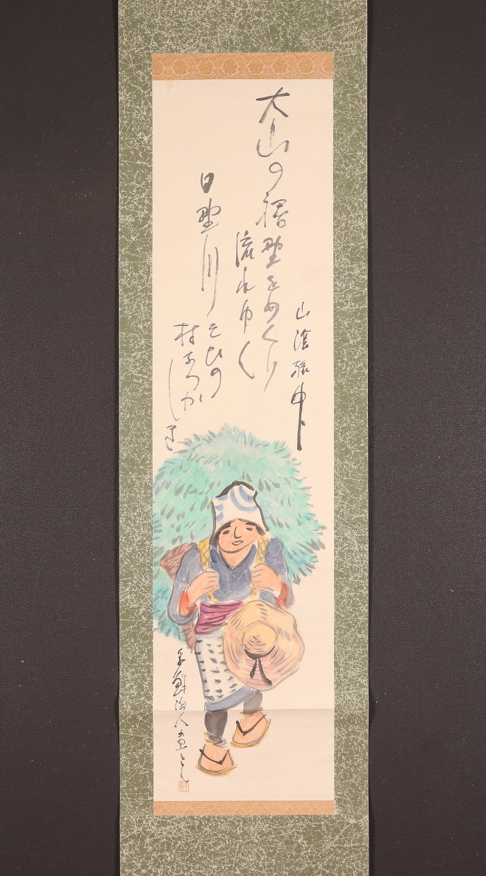 【真作】【伝来_弐】dr2979〈新井謹也〉人物画賛 「大山の~」 陶芸家 洋画家 浅井忠師事 三重の人