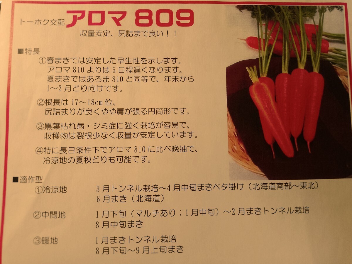 春・夏まき人参の種 品種名アロマ809 約150粒位 アロマレッドシリーズ生育安定型タイプ