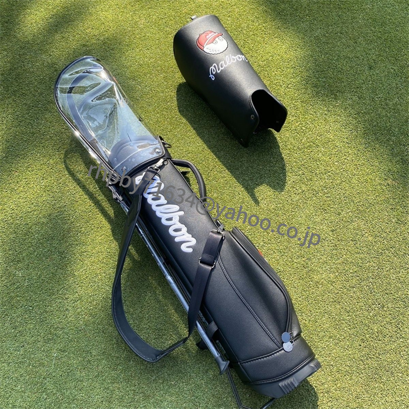 Malbon golf キャディバッグ ヘッド2種類付き 3-way ゴルフバッグ ブラック●RH117