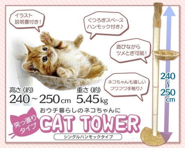突っ張り式 キャットタワー 木登りタワー シングルタイプ ハンモック付 |