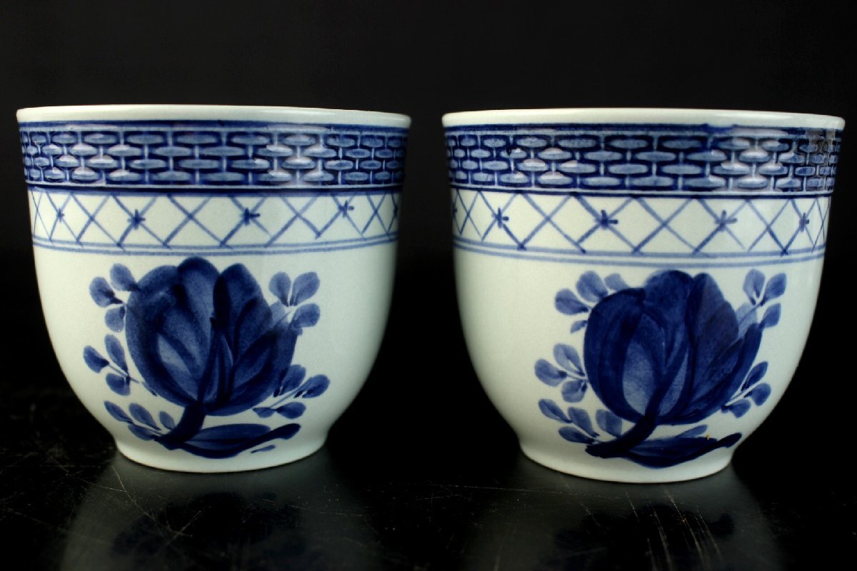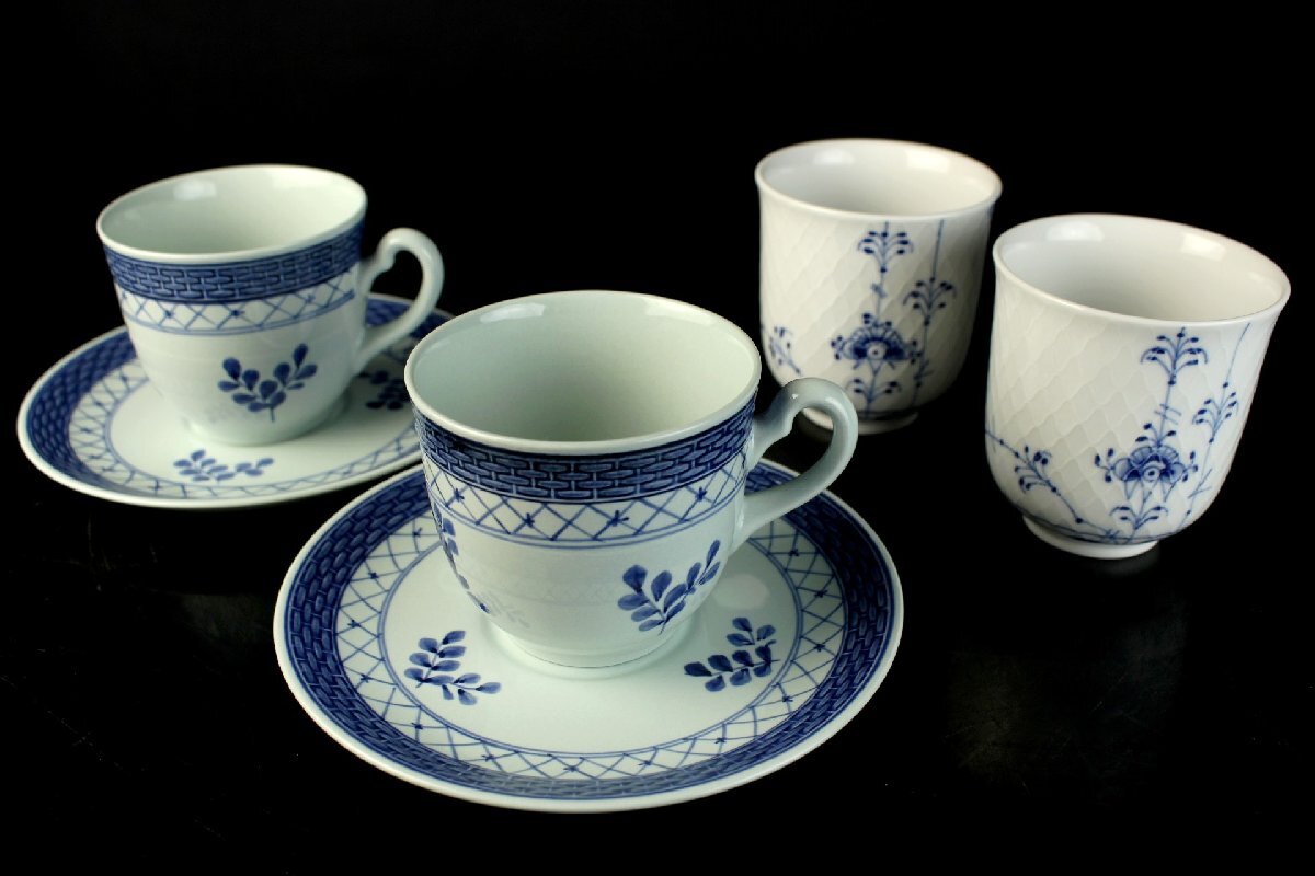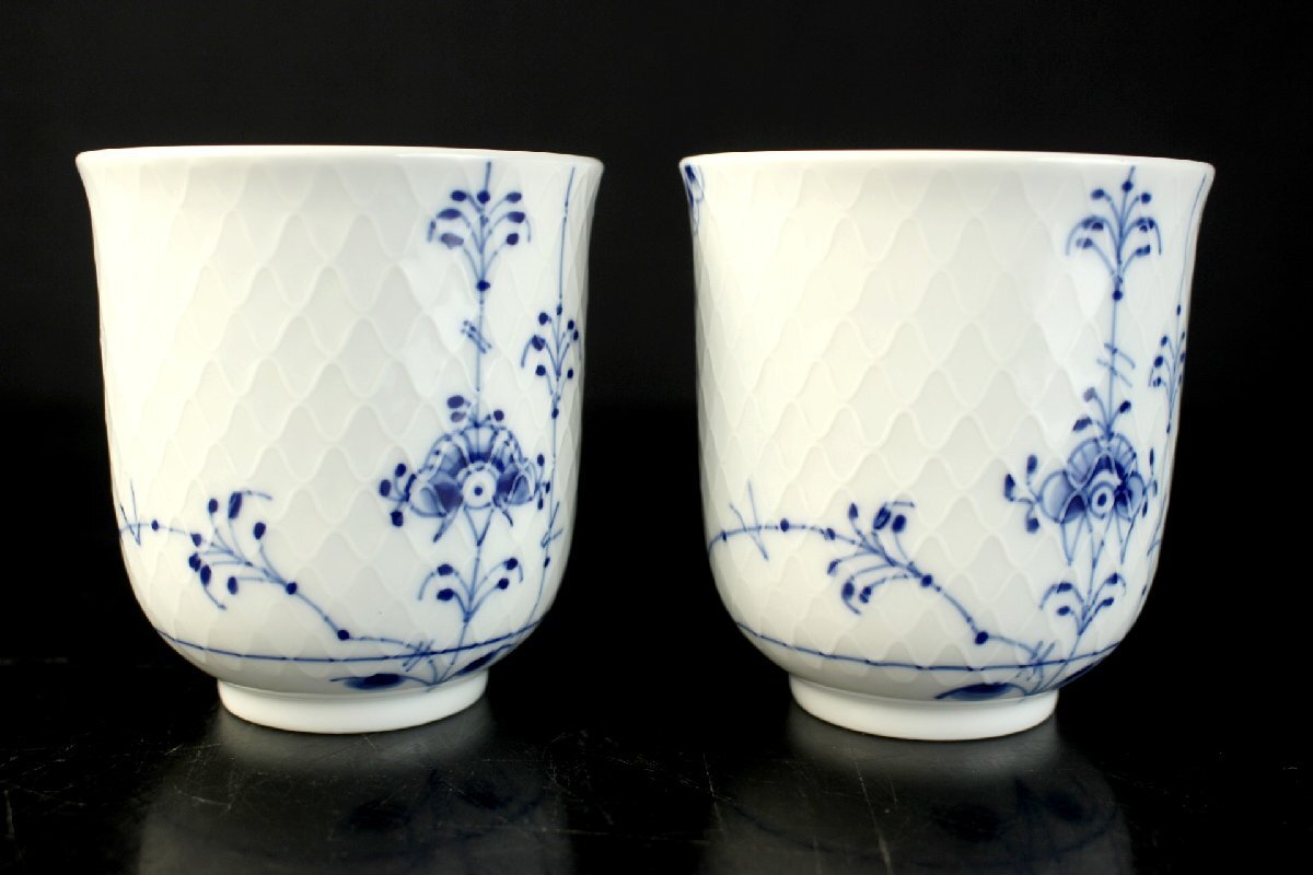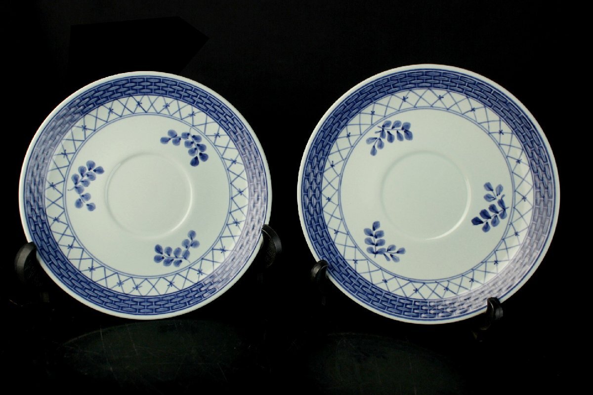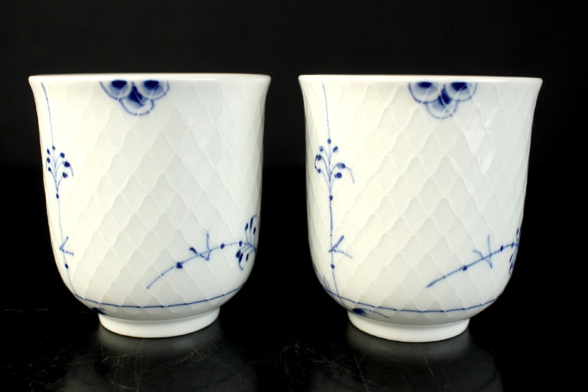 【董芸】未使用 ロイヤル コペンハーゲン ブルーパルメッテ 湯呑 トランクェーバー カップ ソーサー ペア 化粧箱 [8287]