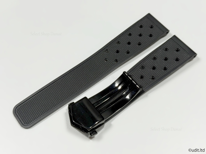 ラグ幅20mm タグホイヤー対応 腕時計ベルト ラバーベルト ブラック ブラック 時計用バンド モナコ カレラ アクアレーサー等に