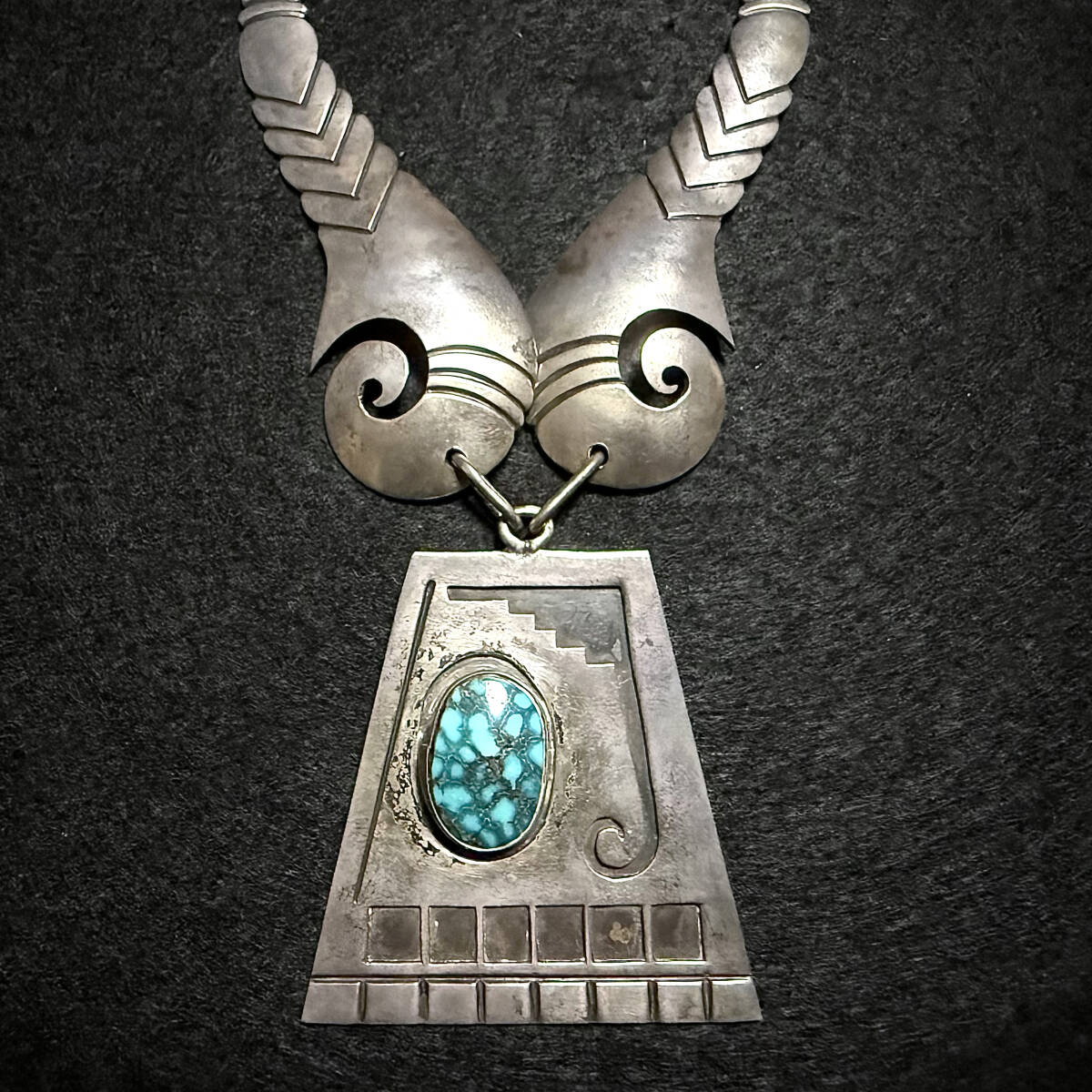超希少! Hopi 故 Morris Robinson ホピ モリス ロビンソン ビンテージ ターコイズ ラージネックレス インディアンジュエリー Old pawn 1950