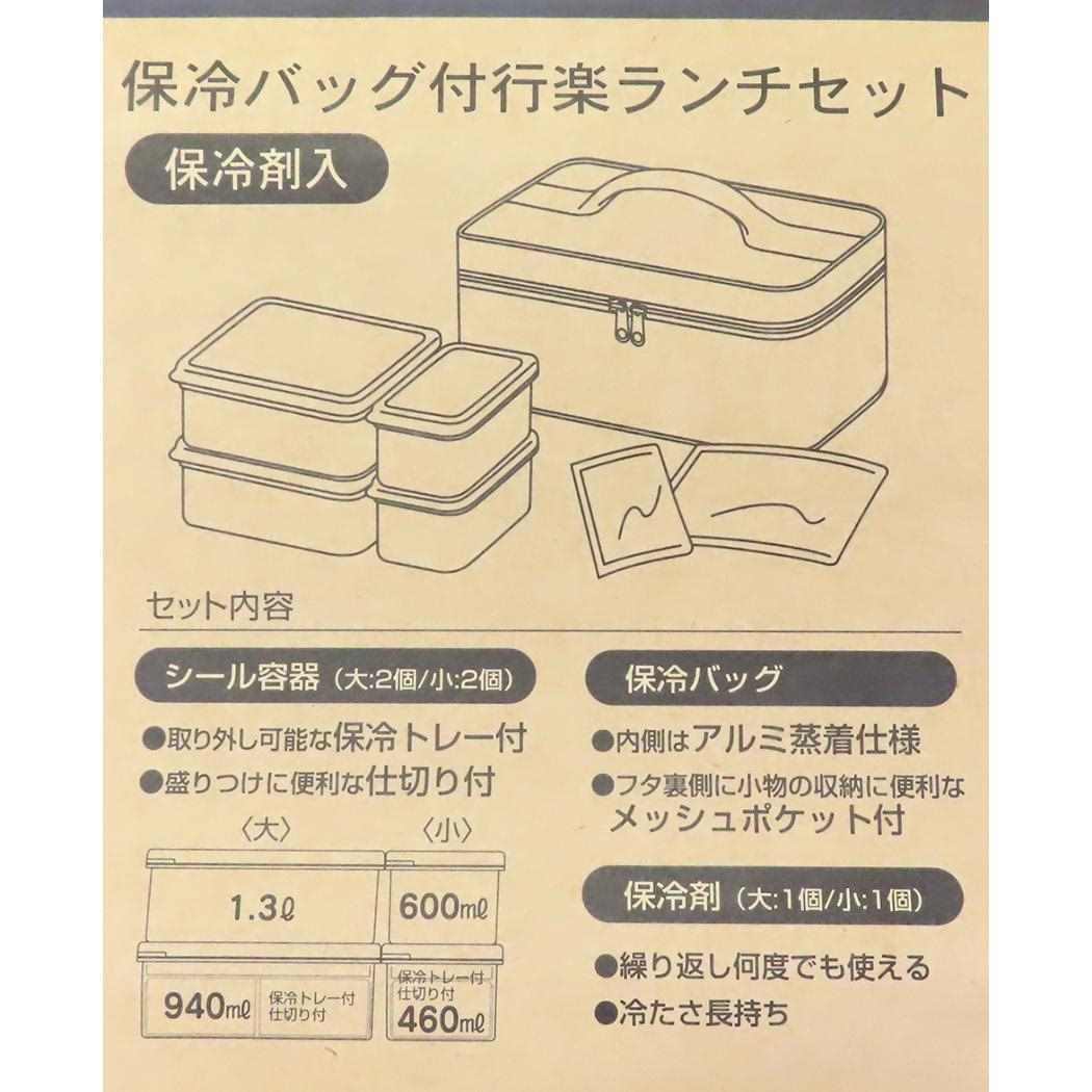 となりのトトロのかわいいランチ雑貨シリーズ 宮崎駿監督の名作[となりのトトロ]グッズにまたまた可愛いnewアイテム登場ちょっとしたお出かけにぴったり4つのシールタイプ容器取り外し可能な保冷トレー、保冷剤、仕切り付き(大小各1ヶずつ)サイズ:193x283x140mm弁当箱サイズ(大)170x170x65mm(小)170x85x65mm容量容器(大)1.3Lx2ヶ容器(小)600mlx2ヶ 保冷トレー装着時の容量は、以下の通りです。大:940ml、小:460ml素材フタ:EVA樹脂 耐熱温度60度本体 仕切:ポリプロピレン 耐熱温度120度保冷トレー:ポリプロピレン 耐熱温度120度保冷剤:(内容物)高吸水性ポリマーランチバッグ素材表地:ポリエステル裏地:アルミ蒸着フィルム断熱材:発泡ポリエチレン