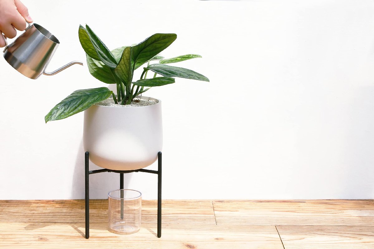 ブランド:KINTO(キントー)カラー:アースグレーサイズ:160mmシンプルなスタンドと丸みのある鉢の組み合わせは、植物をバランスよくみせ、複数を組み合わせて高低差をつけたコーディネートを愉しめます。鉢の下に水受けを置くことで、鉢を動かさずにその場で水やりを行うことができます。※水受け用の容器は付属しておりません。付属のキャップがの水滴を受け止めます。※キャップは水が落ち切ったことを確認してから取り付けてください。床などに傷が付きにくいよう、スタンドの先端にはクッションキャップが付いています。[セット]φ160xH285xW180mm