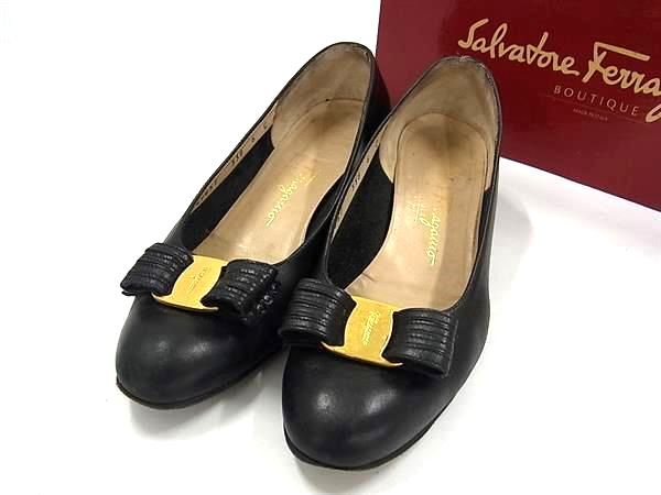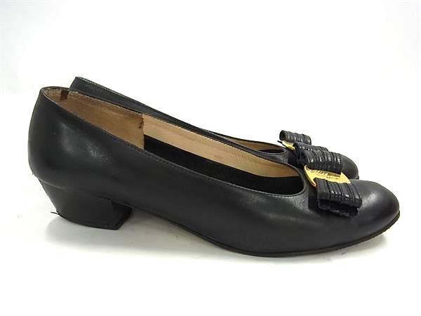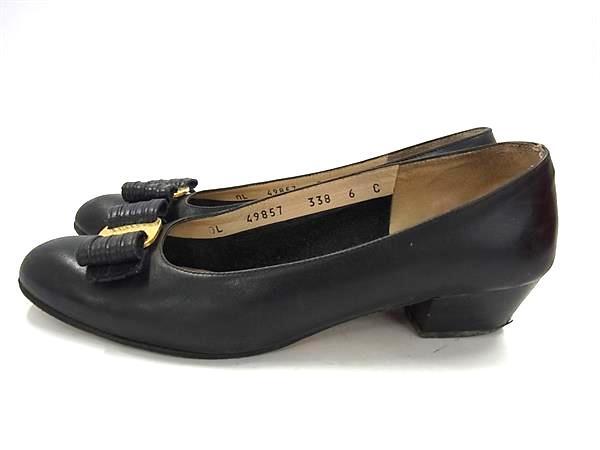 Salvatore Ferragamo フェラガモ ヴァラ リボン レザー パンプス シューズ 靴 表記サイズ6 (約23cm) レディース ブラック系 DI1888
