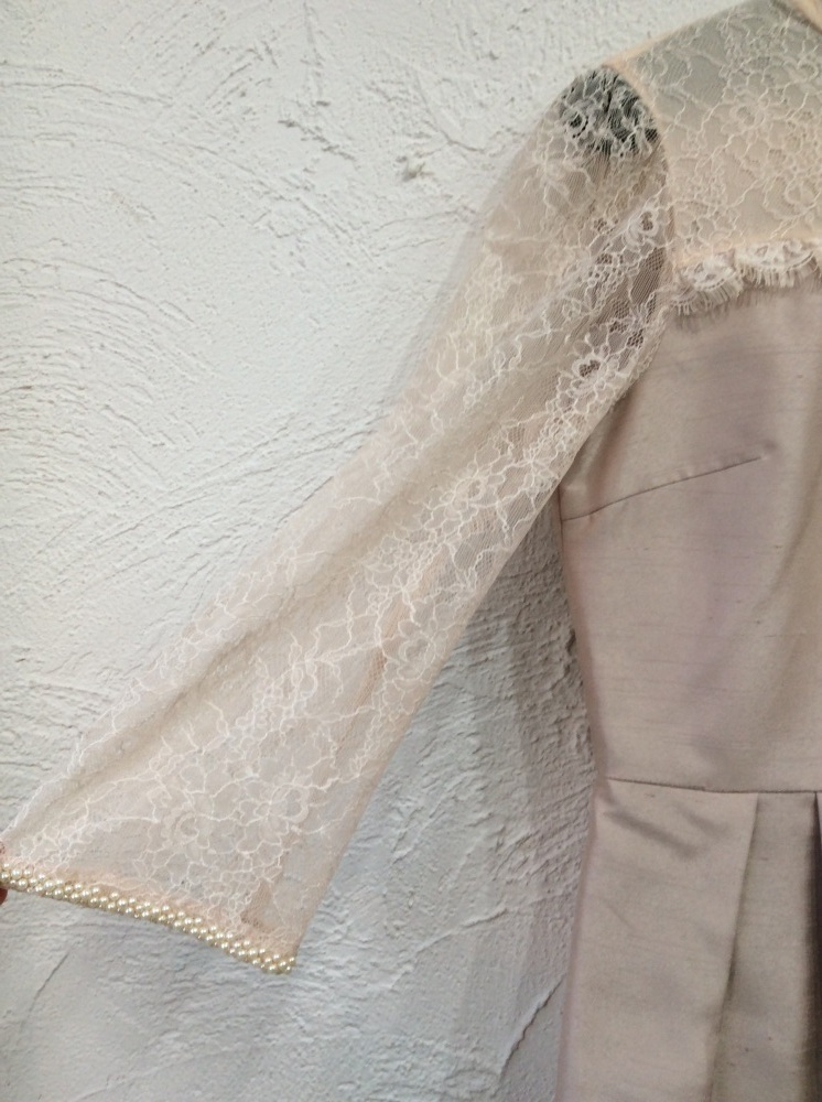 管理番号:40^127039 アナトリエ ピンクベージュワンピース 袖レース 表示サイズ:36 実寸(参考)