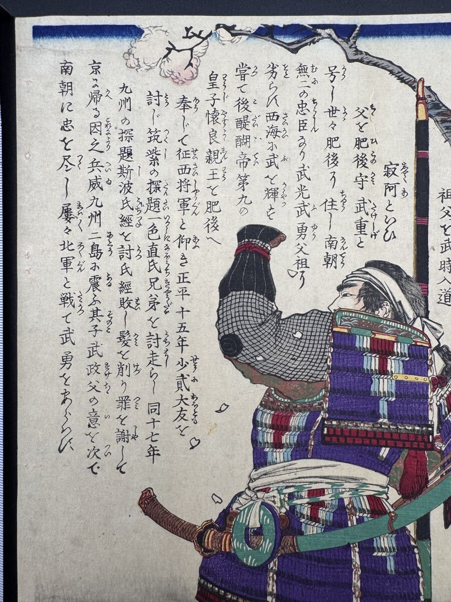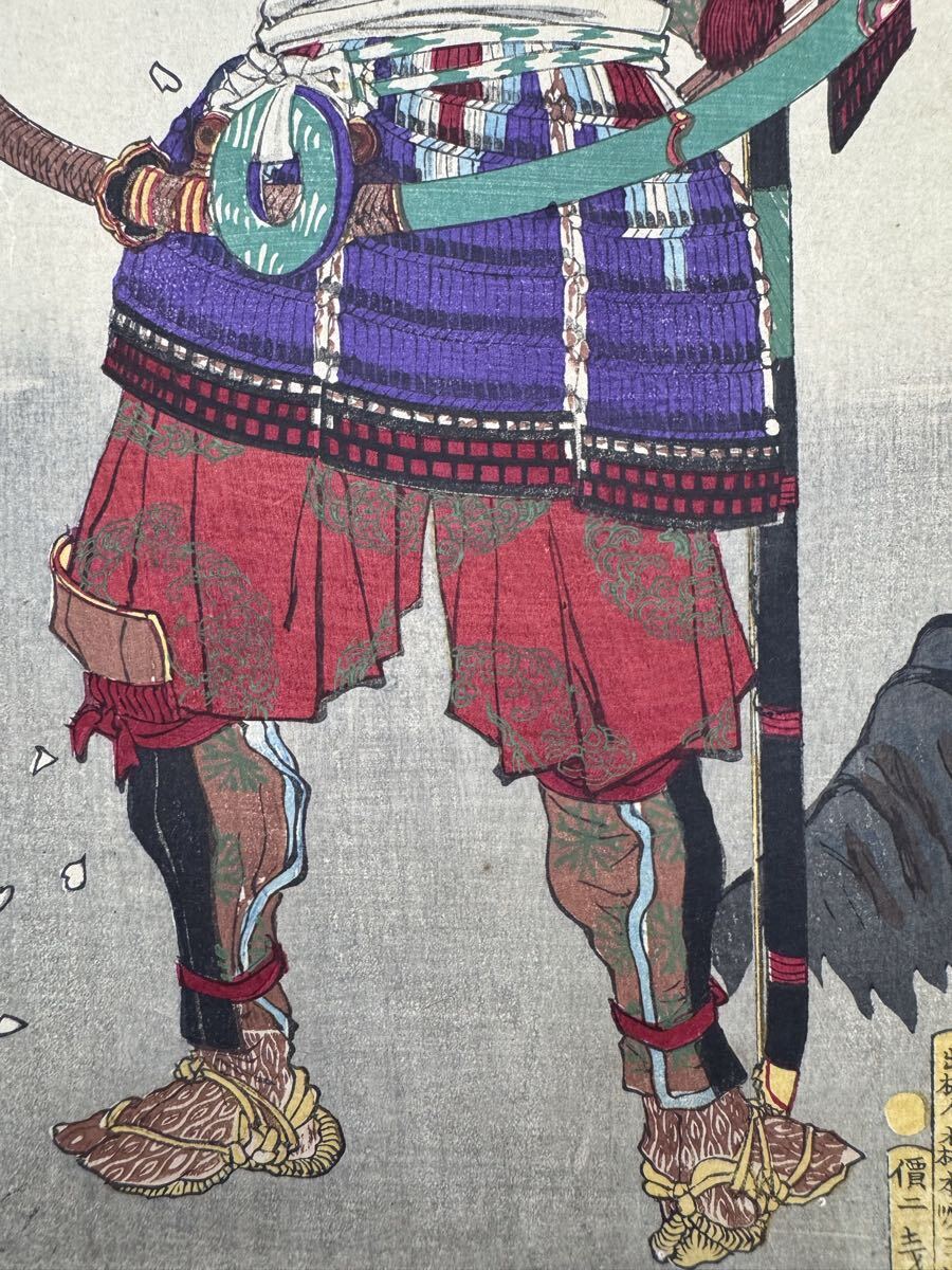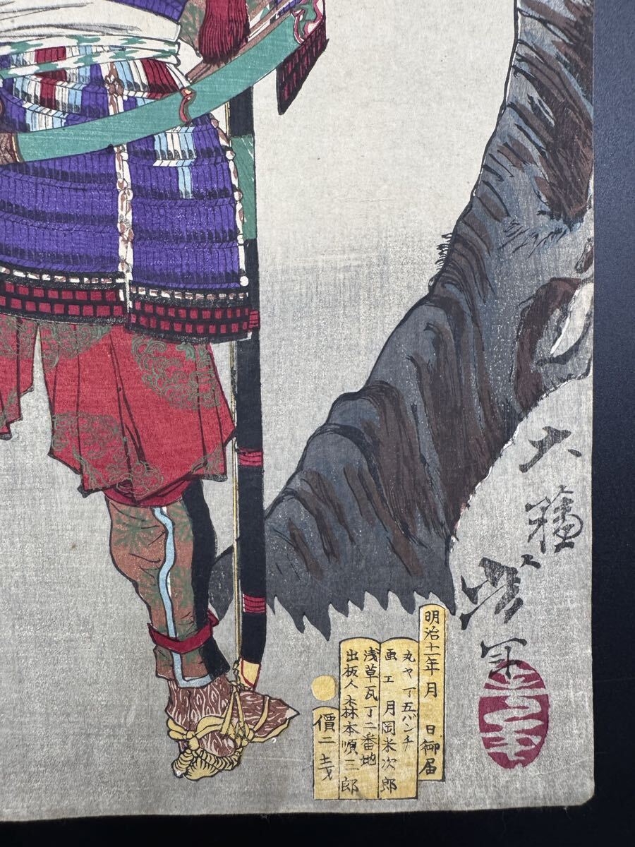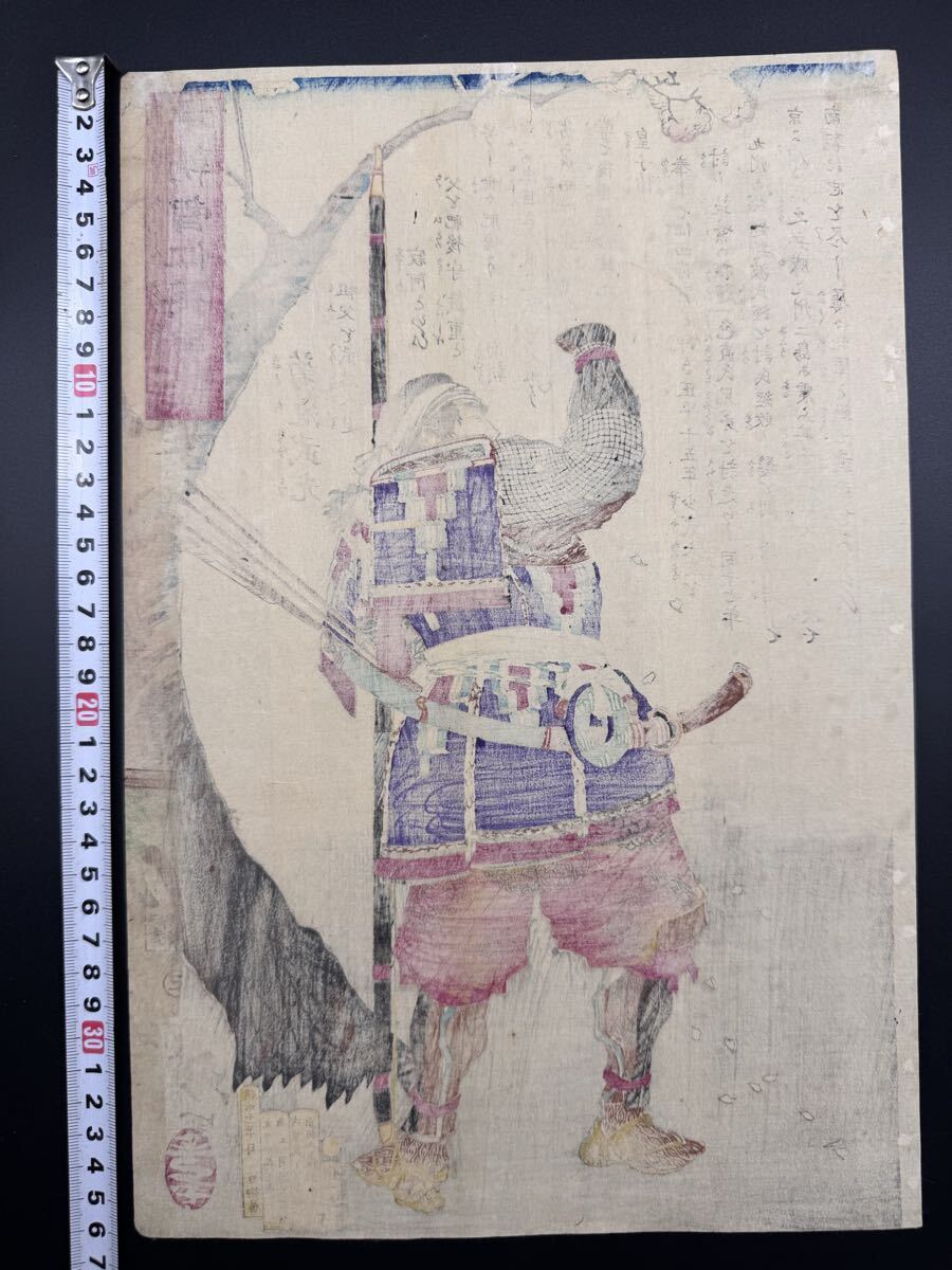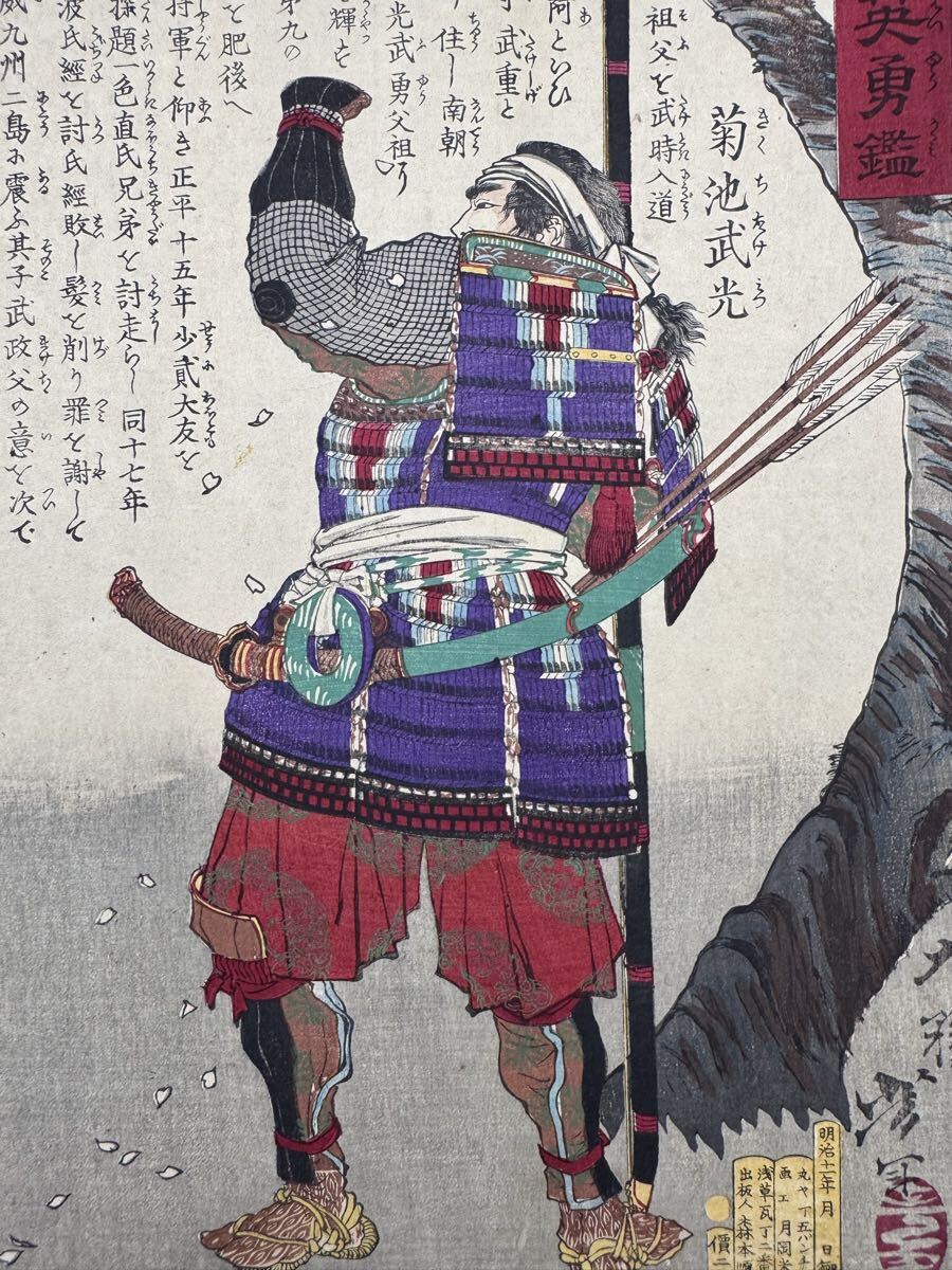 【真作】名作!本物浮世絵木版画 月岡芳年【本朝智仁英勇鑑 菊池武光】明治期 武者絵 大判 錦絵 保存良い