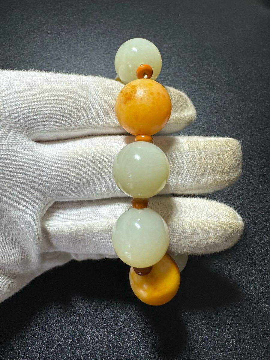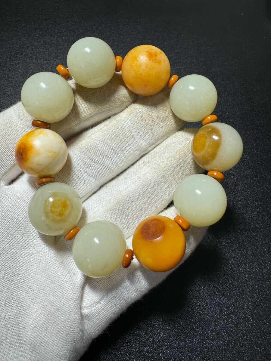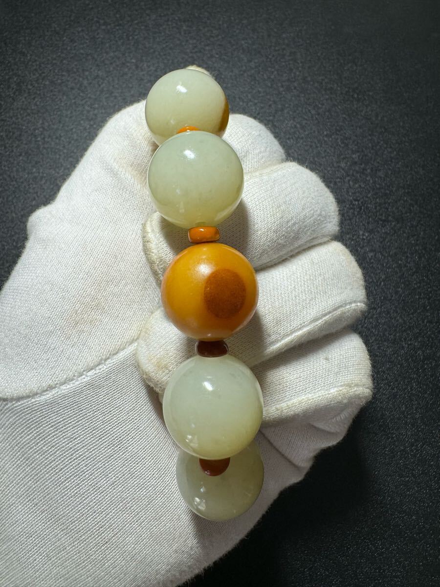 新疆産和田玉数珠 ブレスレット 腕輪 天然石 念珠 本玉 天然石 老玉 古玉 中国古美術 清時代中国古美術 旧家蔵出し
