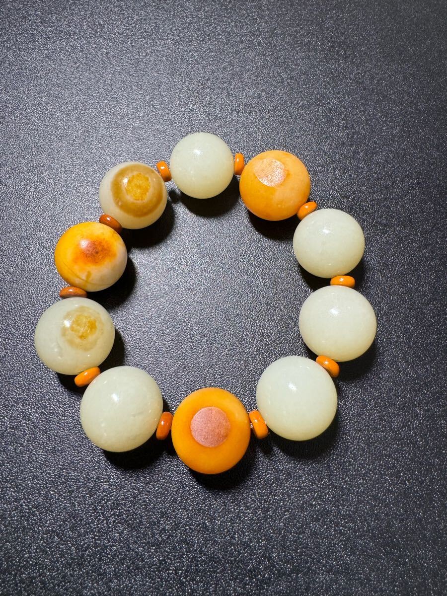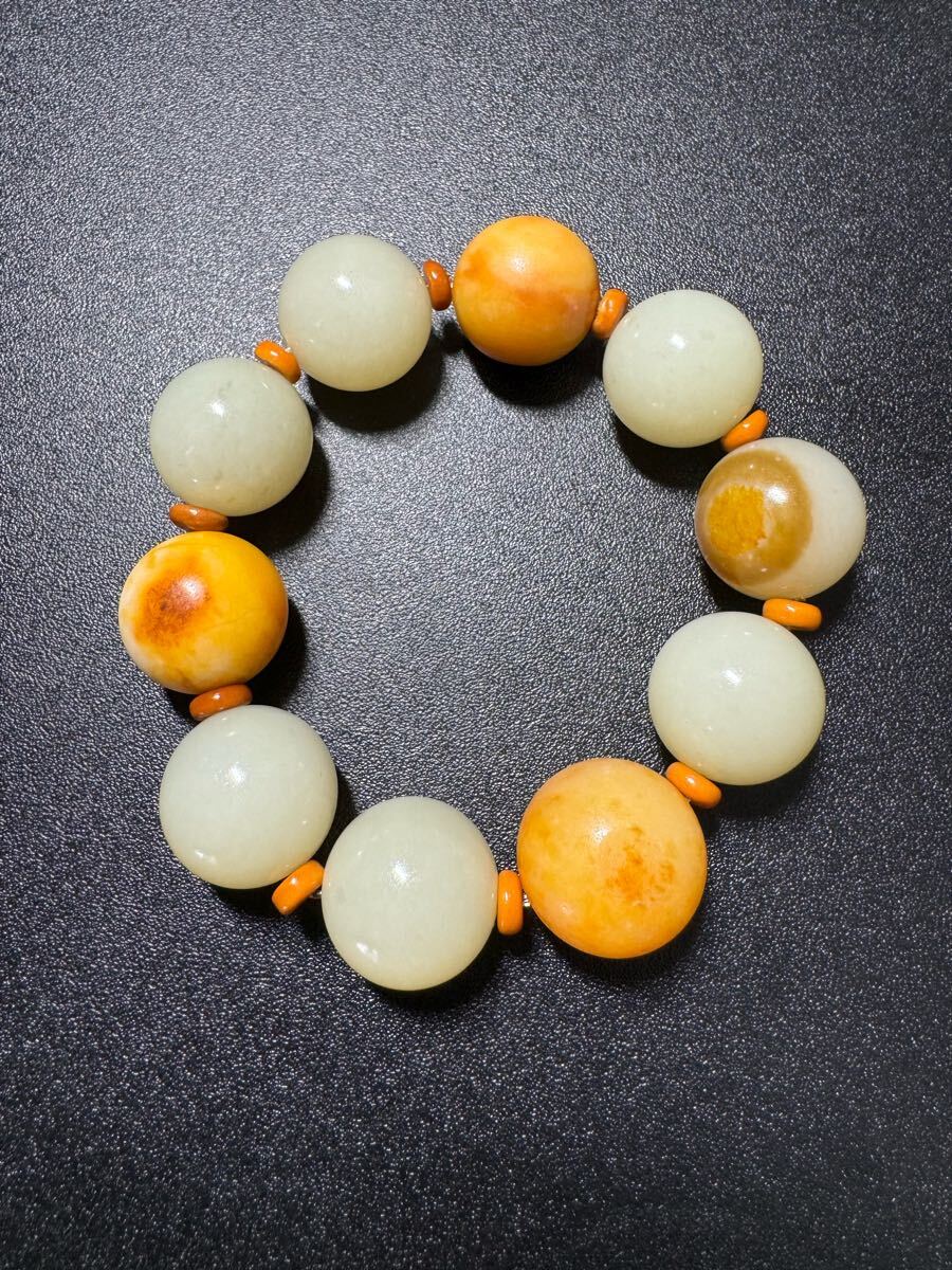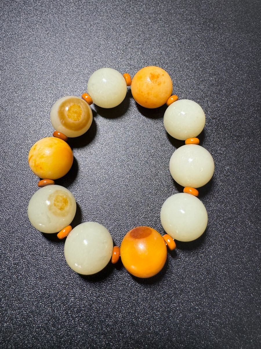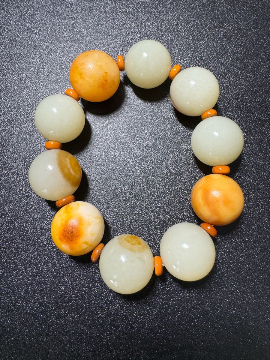 新疆産和田玉数珠 ブレスレット 腕輪 天然石 念珠 本玉 天然石 老玉 古玉 中国古美術 清時代中国古美術 旧家蔵出し