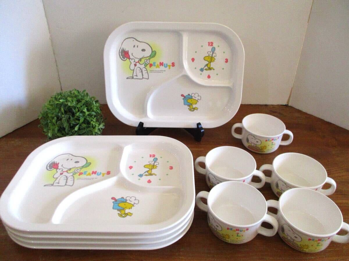 【美品】Richell リッチェル スヌーピー PEANUTS ランチプレート5枚&スープカップ5個 合計10点セット※シール跡あり メラミン 軽量 子供用 | |||