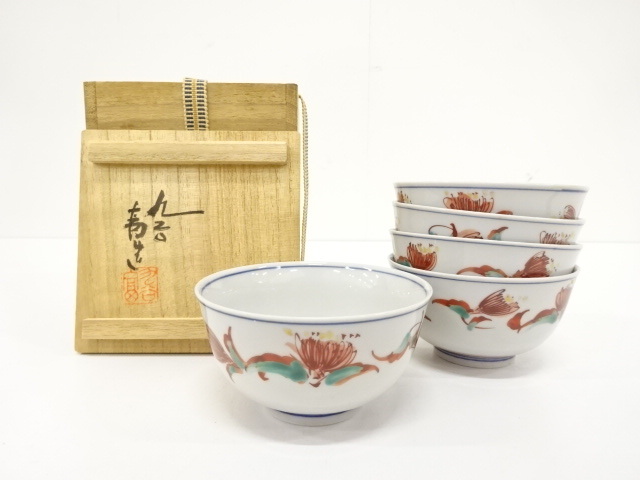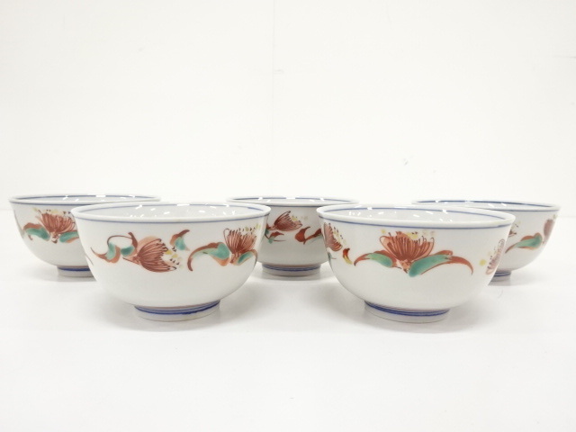 作家物 九谷焼 赤絵 花 汲出 5客揃 (II1DHP-035)