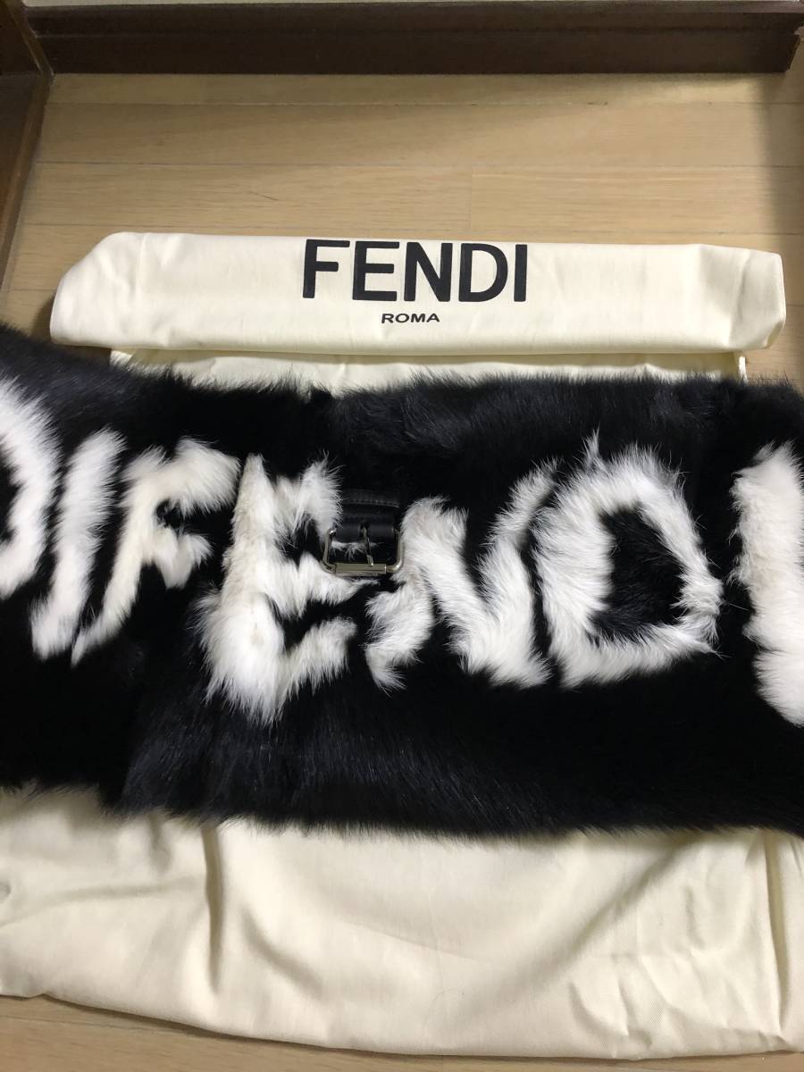 FENDI フェンディ フォックスファー ショール ティペット FENDIFENDI ロゴ 黒x白 ブラックxホワイト 新品タグ付き