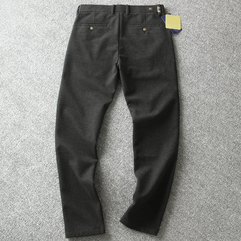 Y6427-M ダークグレー 新品 ウール混 ストレートパンツ ノーアイロン 秋冬 防寒 厚手 通勤 快適 ストレッチ メンズ ビジネス カジュアル