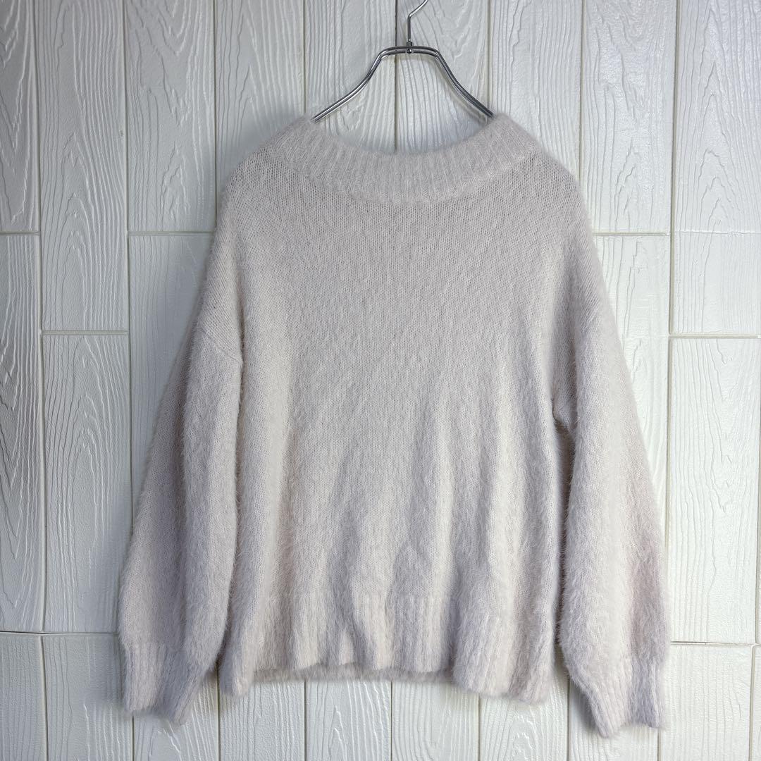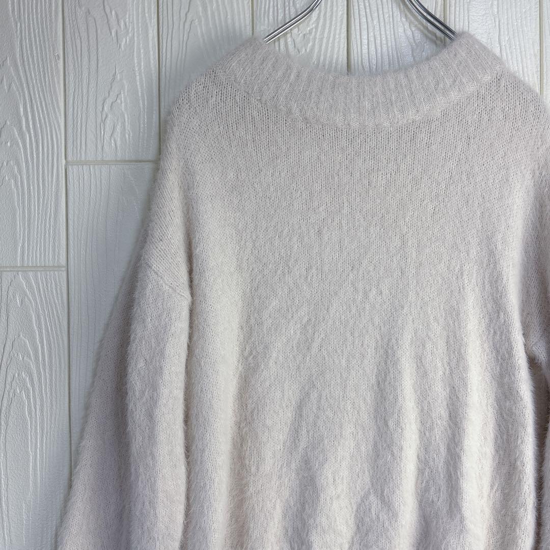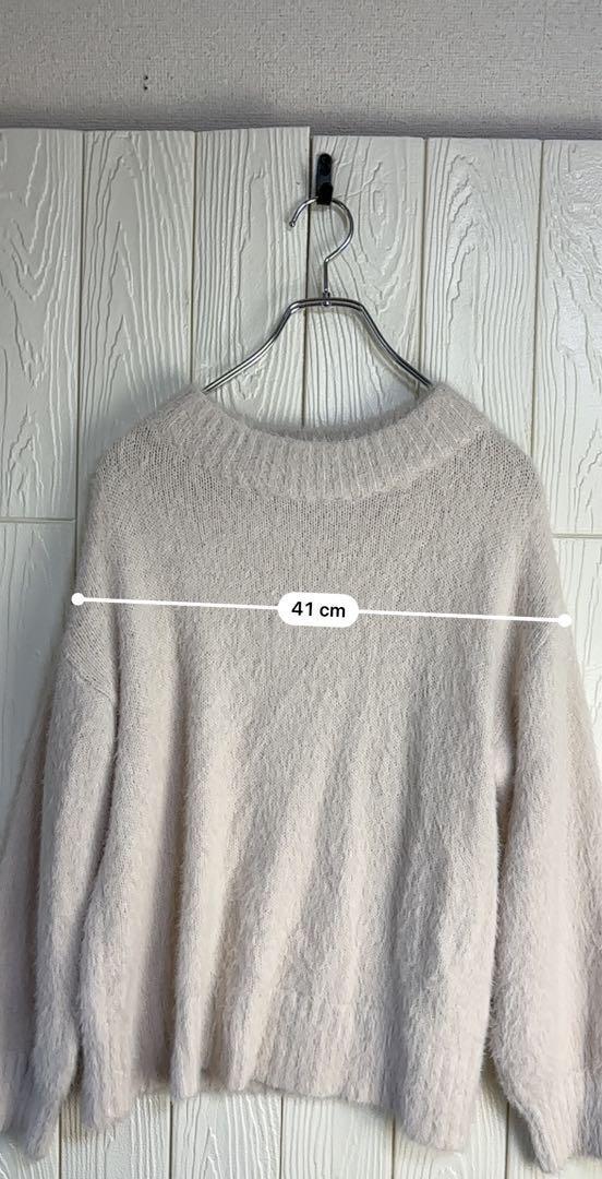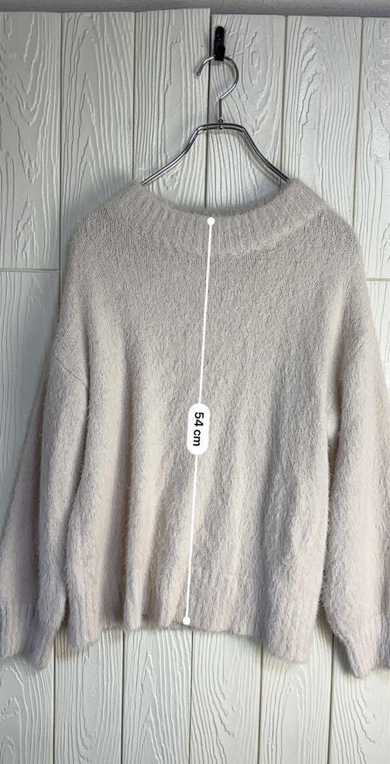 柔らかなライトベージュのニットセーター、プレミアムラベル付き。