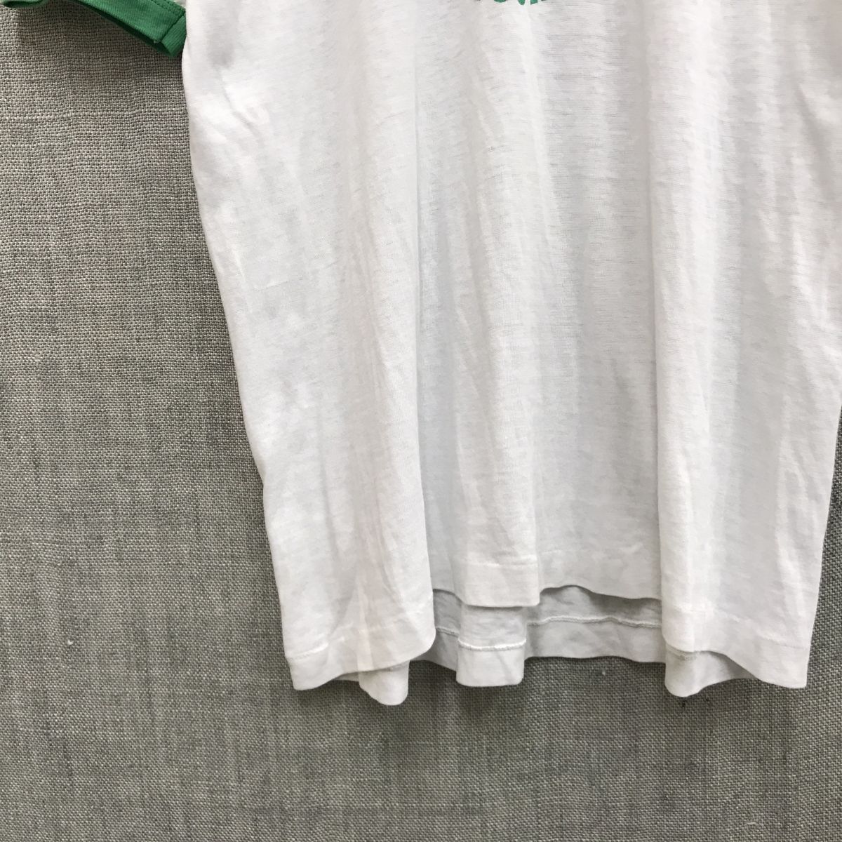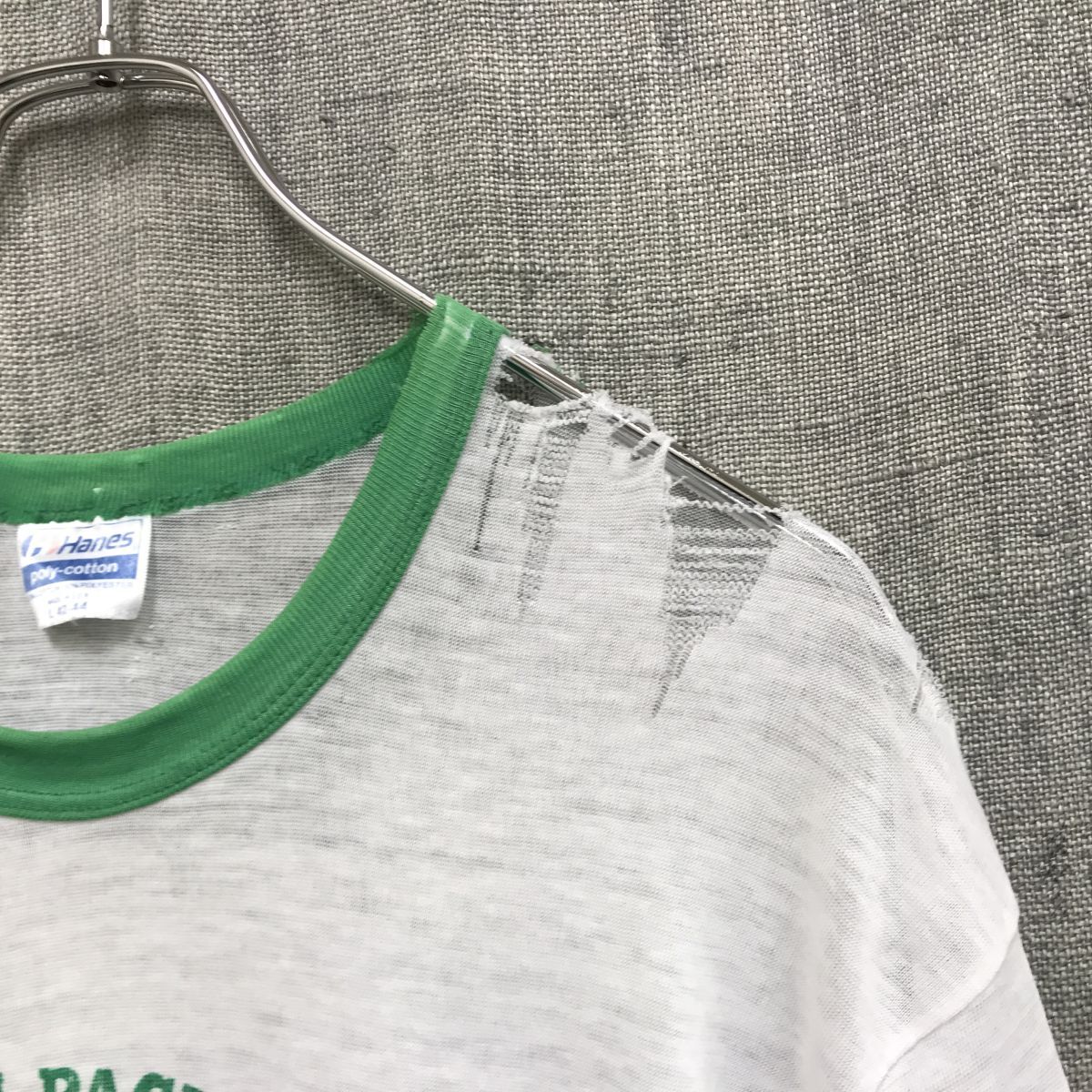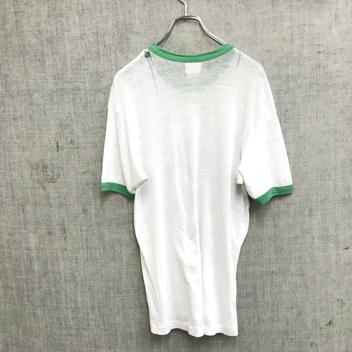 2K1301-N◆80s◆USA製 HANES ヘインズ 半袖Tシャツ カットソー リンガーTシャツ ◆sizeL ホワイト グリーン コットン ポリ