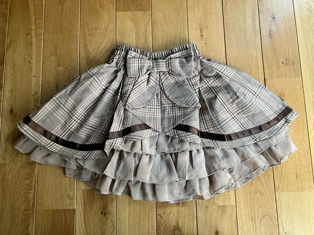 新品 マジョリカ バッグリボン チェックスカート ブラウン 110 100