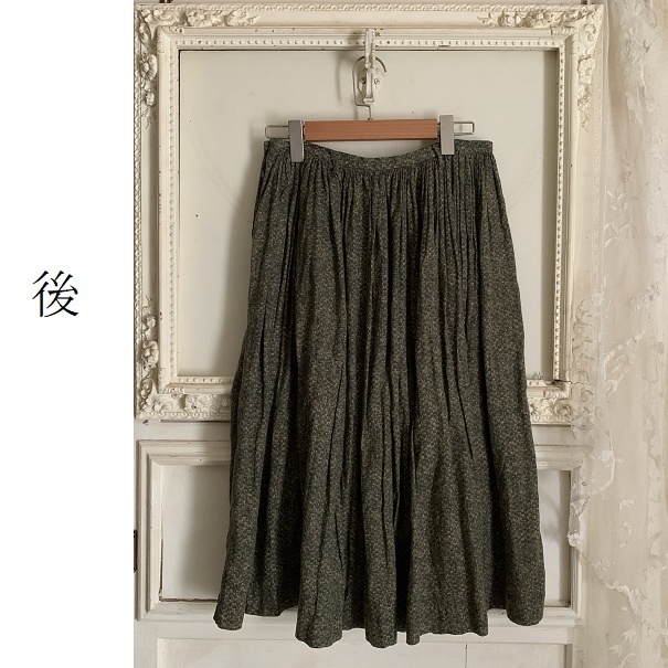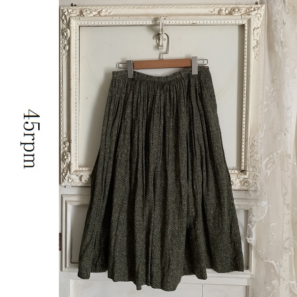 45rpm  R by  コットン綿100%  ギャザースカート フレアロングスカート オリーブ 深緑