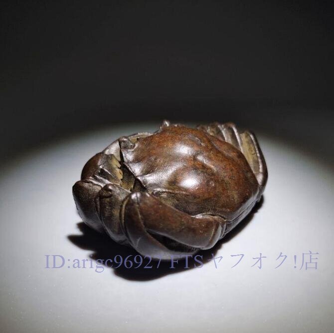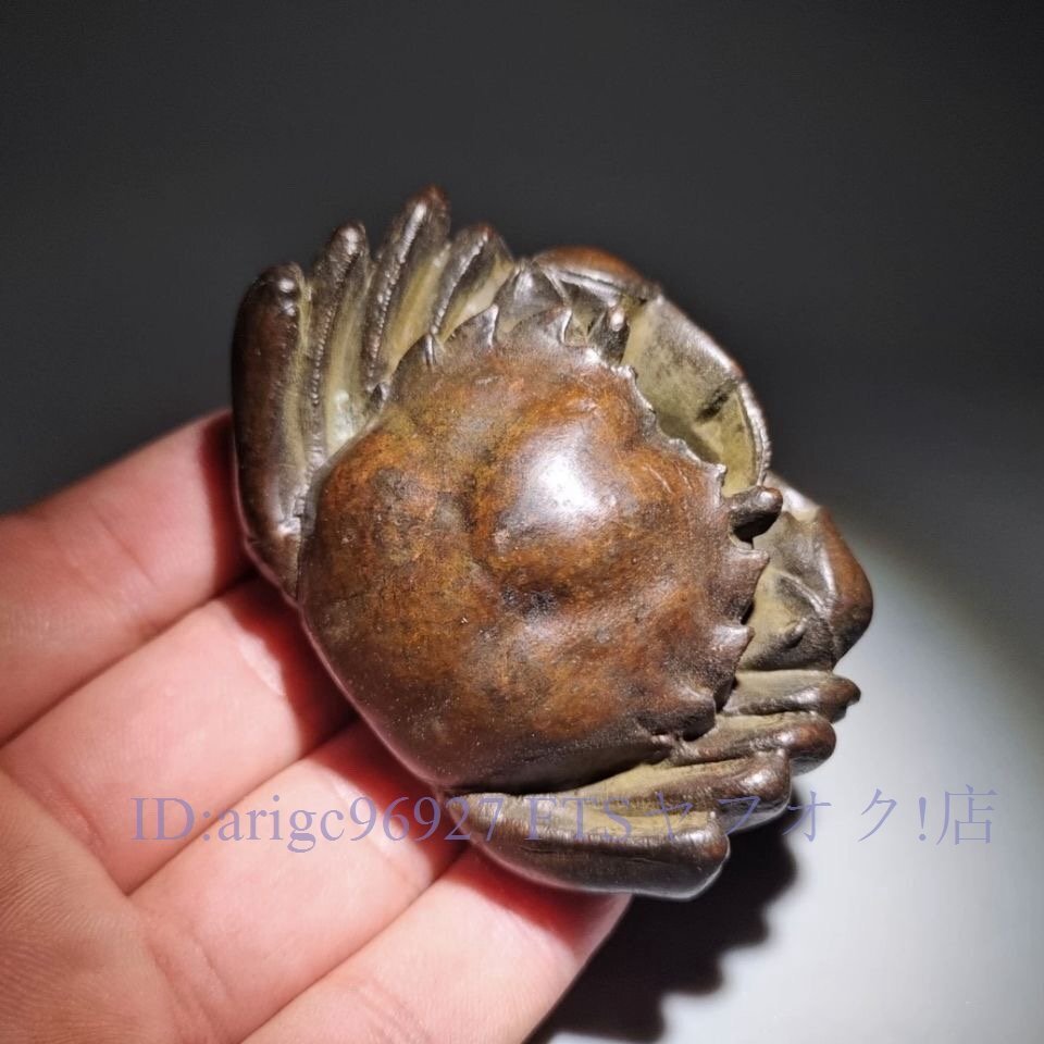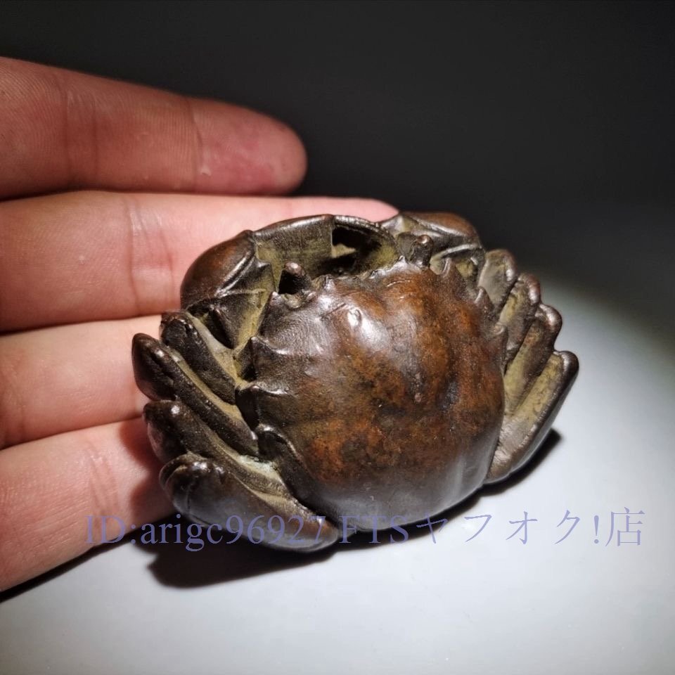 新品★360g 古銅 蟹 かに カニ 茶道具 置物 置き物 蓋置 床の間 茶会 煎茶飾り骨董 ペーパーウェイト アンティーク真鍮 金属 銅製 銅